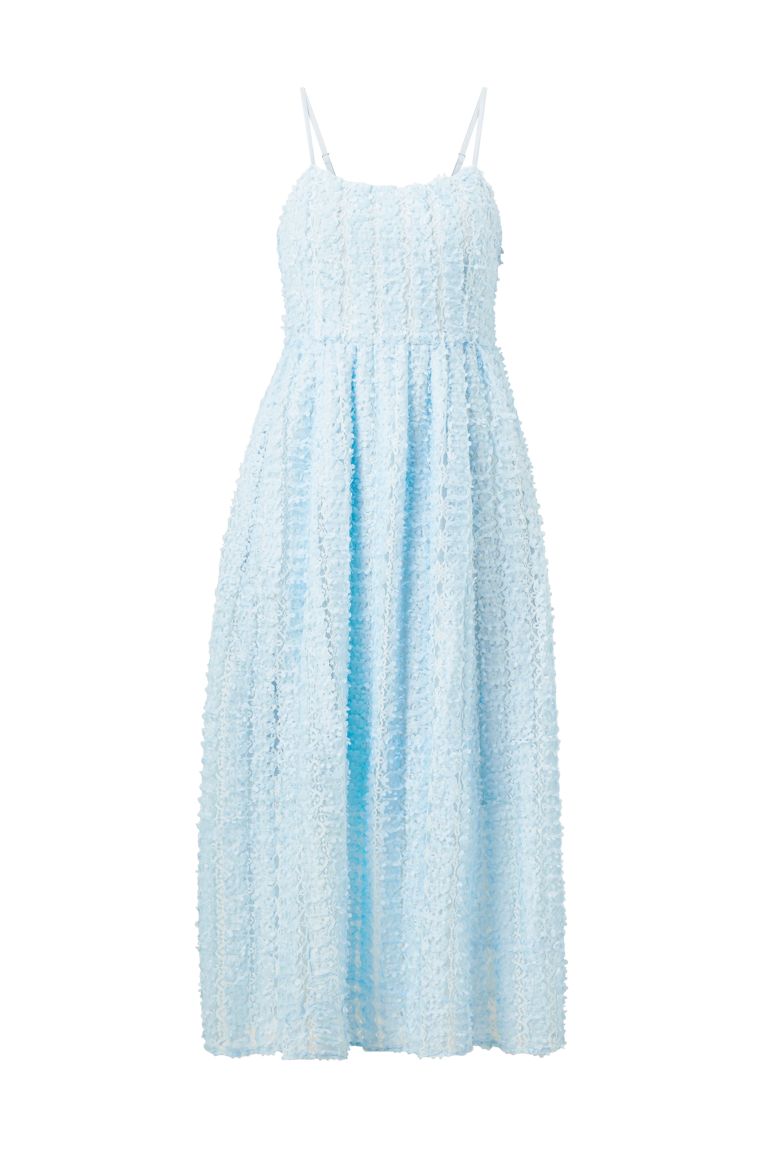 Romanttinen pitsimidimekko, jossa kangasapplikoinnit kauttaaltaan. Kapeat, säädettävät olkaimet ja piilovetoketju sivulla. Pituus n. 123 cm koossa 36.