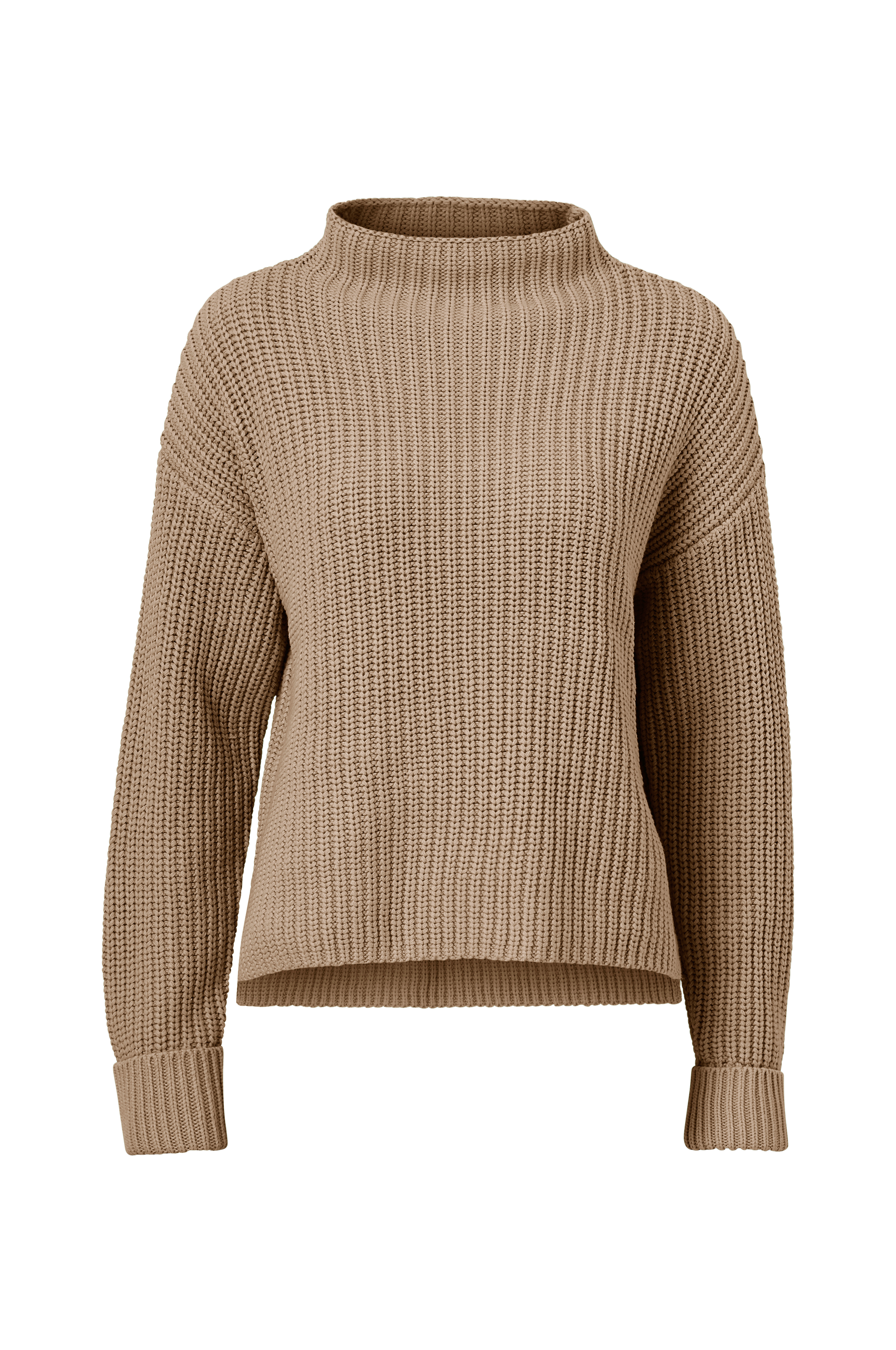 Selected Femme slfSelma LS Knit T-neck -neulepusero, jossa rento malli, madalletut olkapäät, käärityt hihat ja pystykaulus. Pidempi takakappale ja sivuhalkiot.