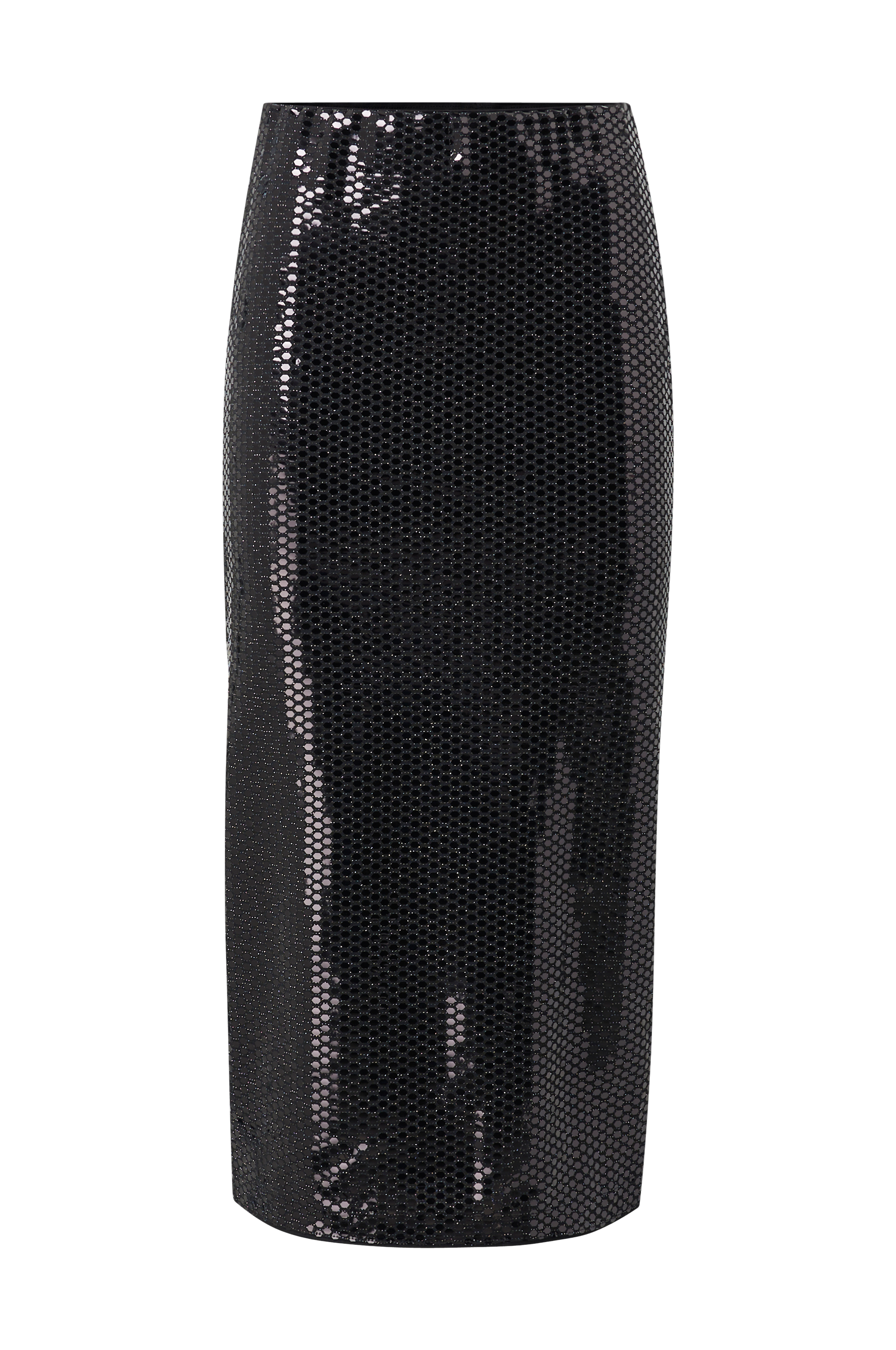 • Kapea, ihonmyötäinen malli drapeerauksella edessä • Korkea, elastinen vyötärö • Halkio edessä • Valmistettu trikoosta paljeteilla • Pituus: 80 cm koossa S