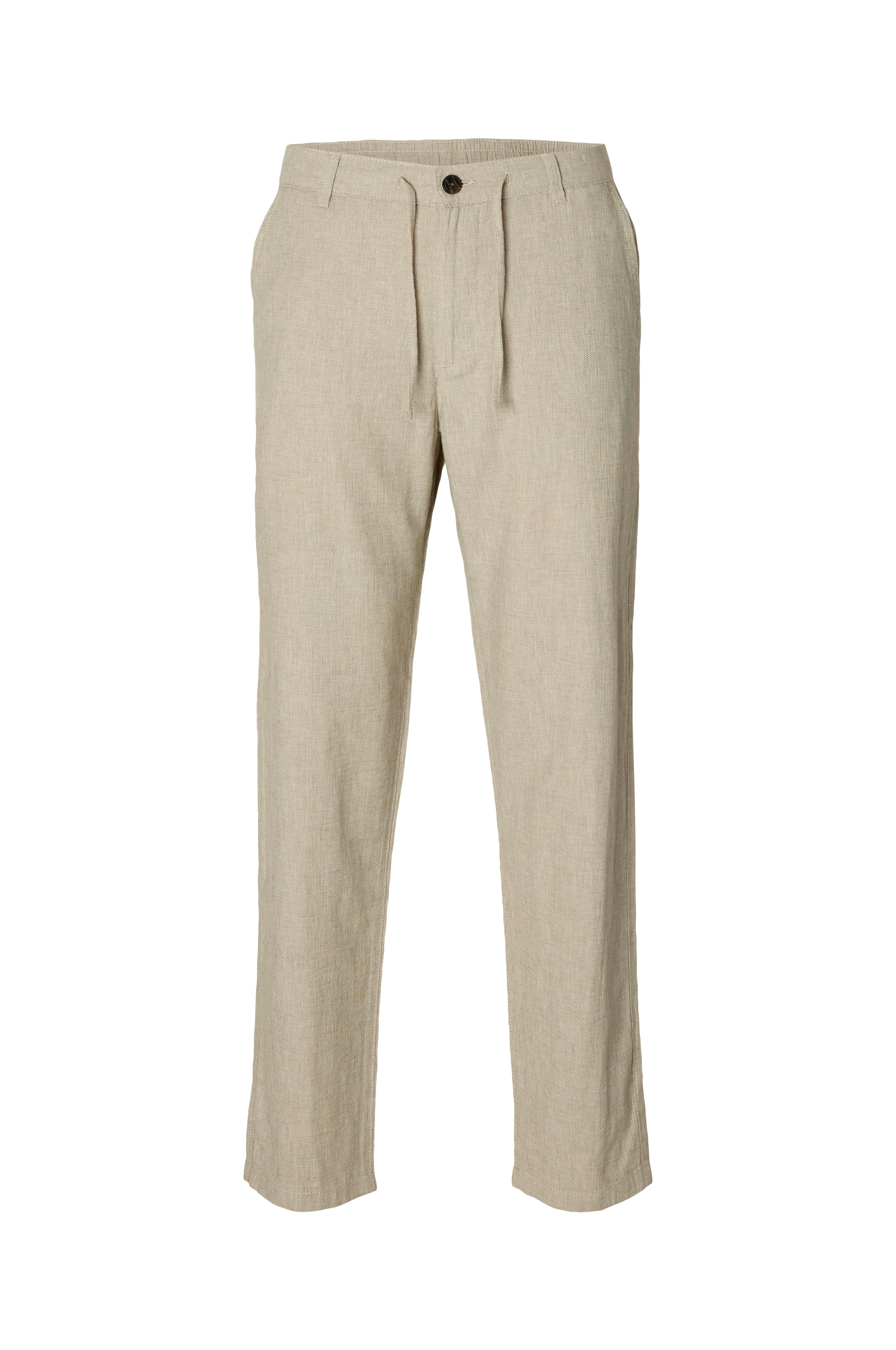 • Housut pellavasekoitteesta• Kapea istuvuus• Kapeat jalat• Joustonauha vyötärön takaosassa• Kiristysnyöri• Silmukat• Vetoketjusepalus• Kaksi taskua edessä• Kaksi takataskua napilla