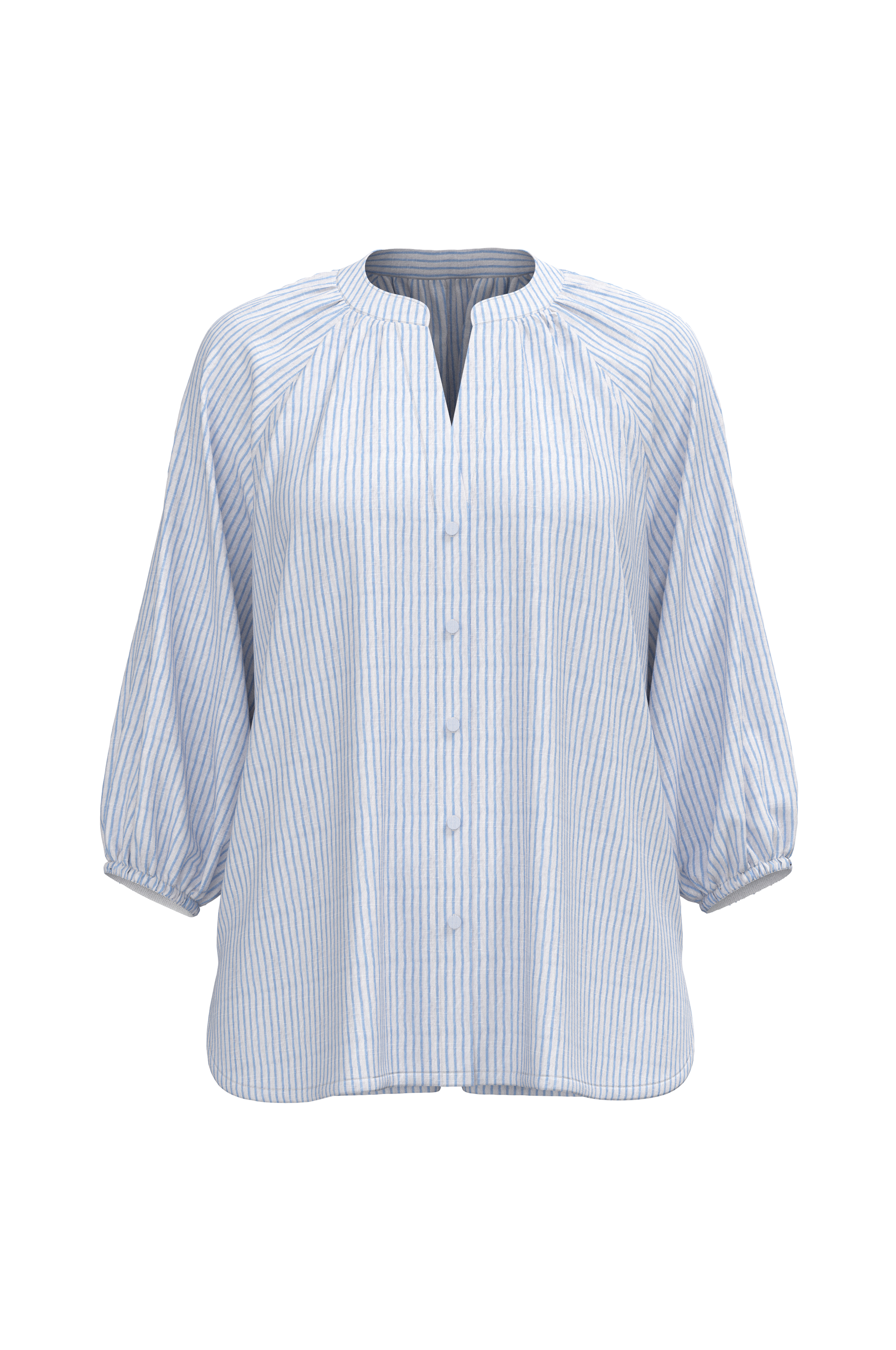 • Raidallinen paita• V-kaula-aukko• Päällystetyt napit• 3/4-pituiset raglanhihat joustavilla hihansuilla• Halkiot alhaalla sivuilla