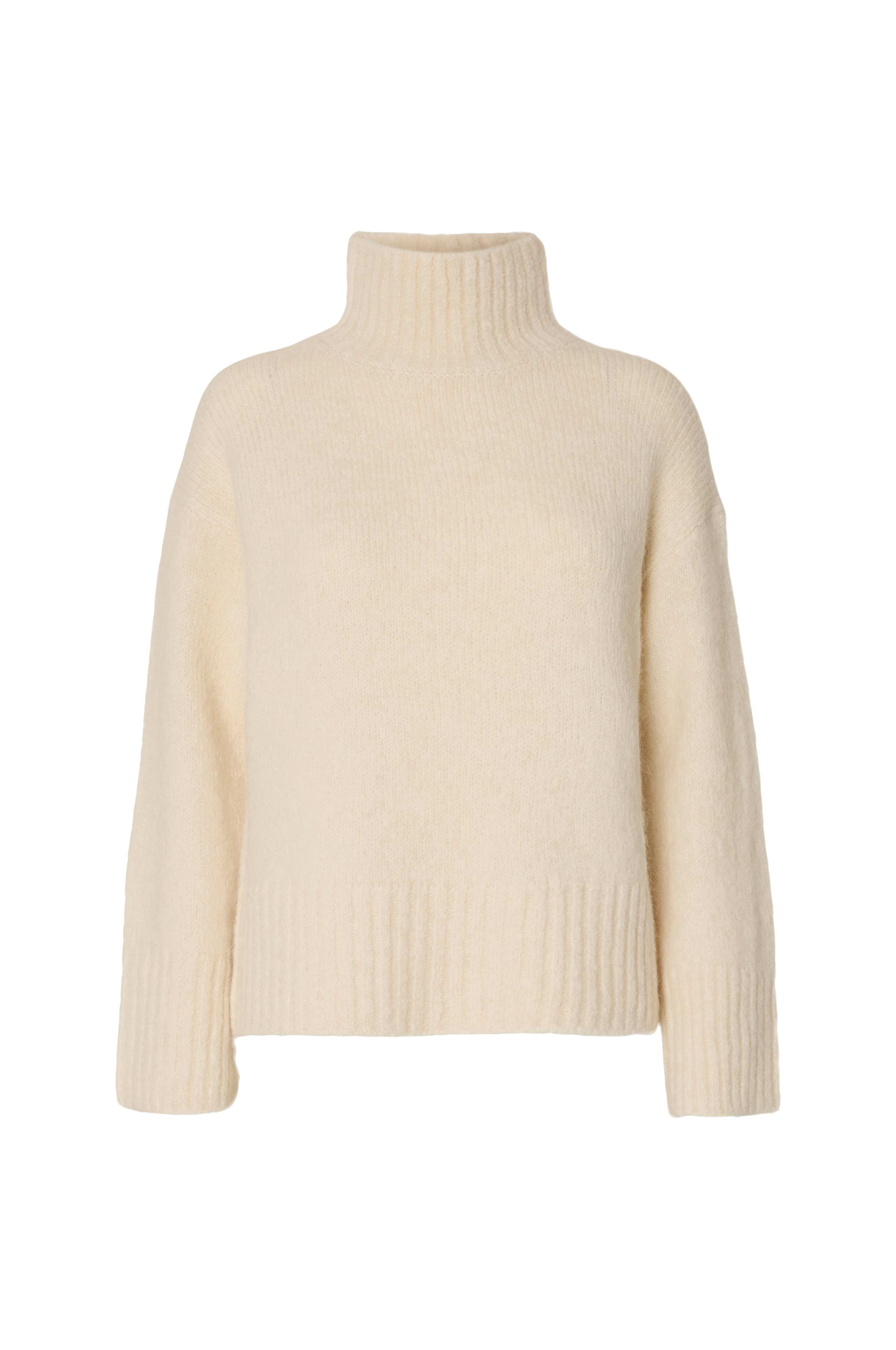 • Tiheäsilmukkainen pulloveri alpakka-sekoituksesta pitkillä hihoilla• Korkea, ribattu kaulus• Ribbineulos hihansuissa ja alahelmassa