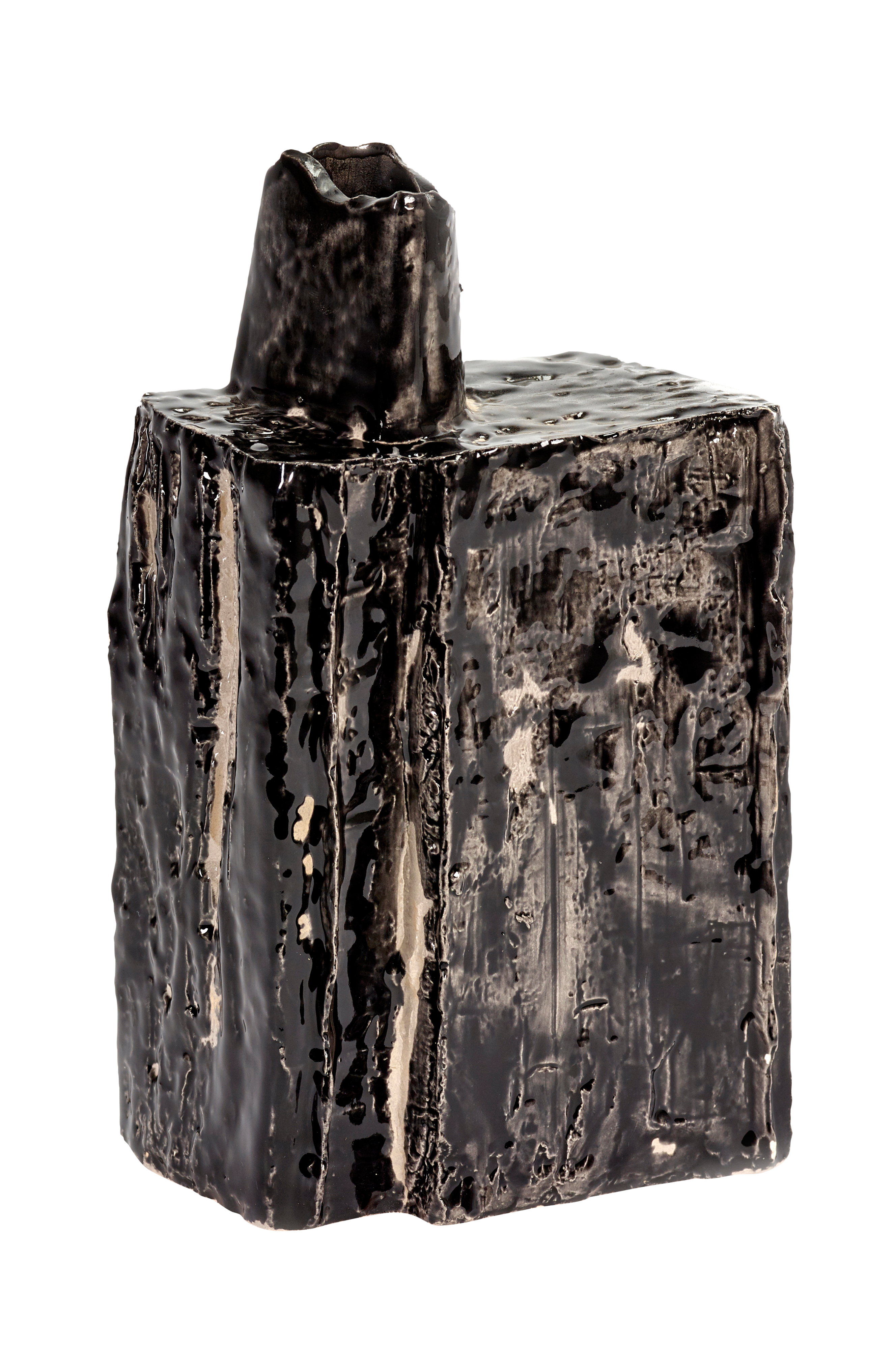En keramisk vas med blank finish, skapad av Eva Claessens och insperad av naturens former. Höjd 20 cm, bredd 11 cm och djup 7,5 cm.