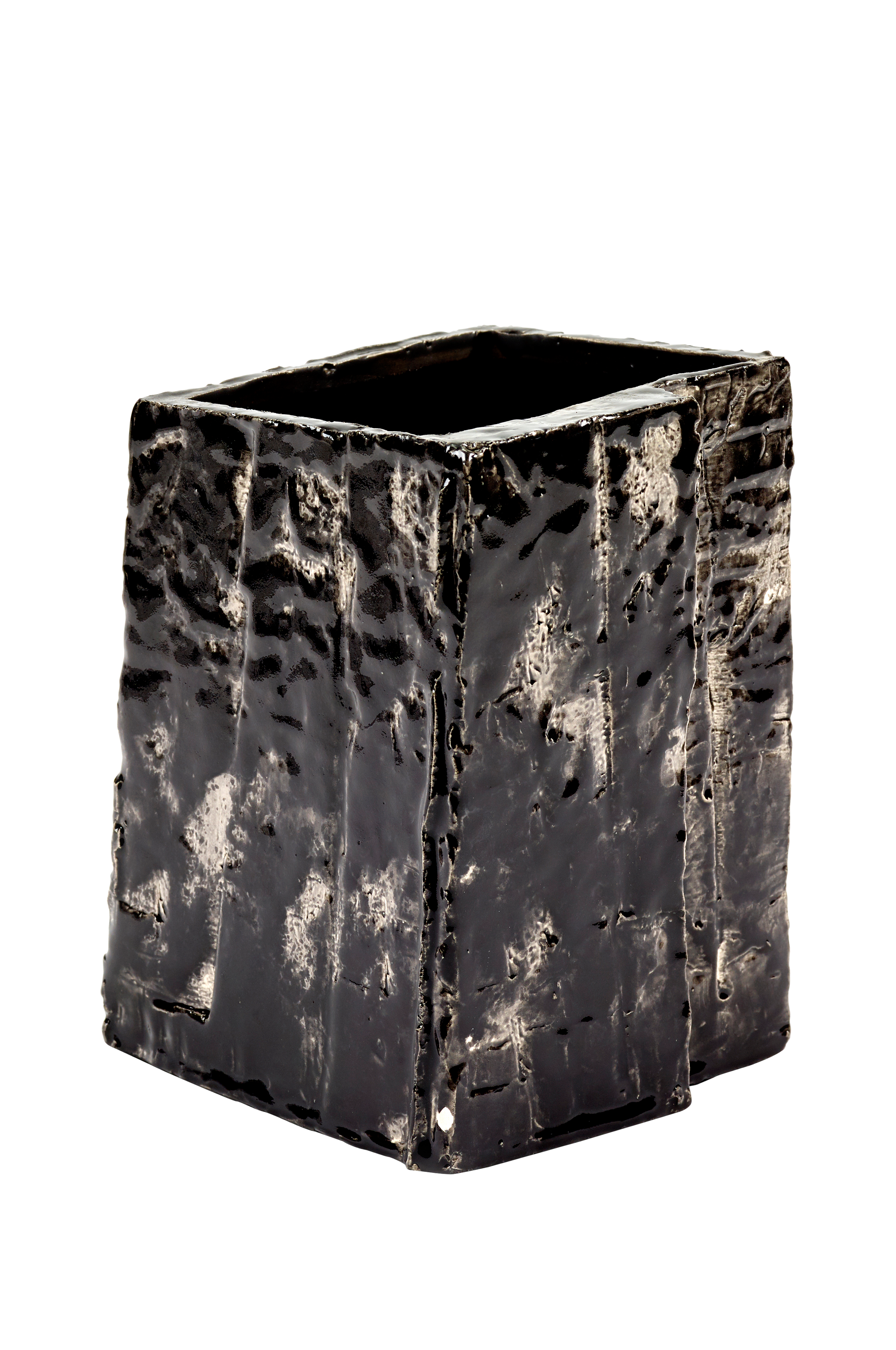En keramikvas med glaserad yta, formgiven av Eva Claessens och insperad av naturens former. Höjd 19 cm, bredd 13,5 cm och djup 13,5 cm.