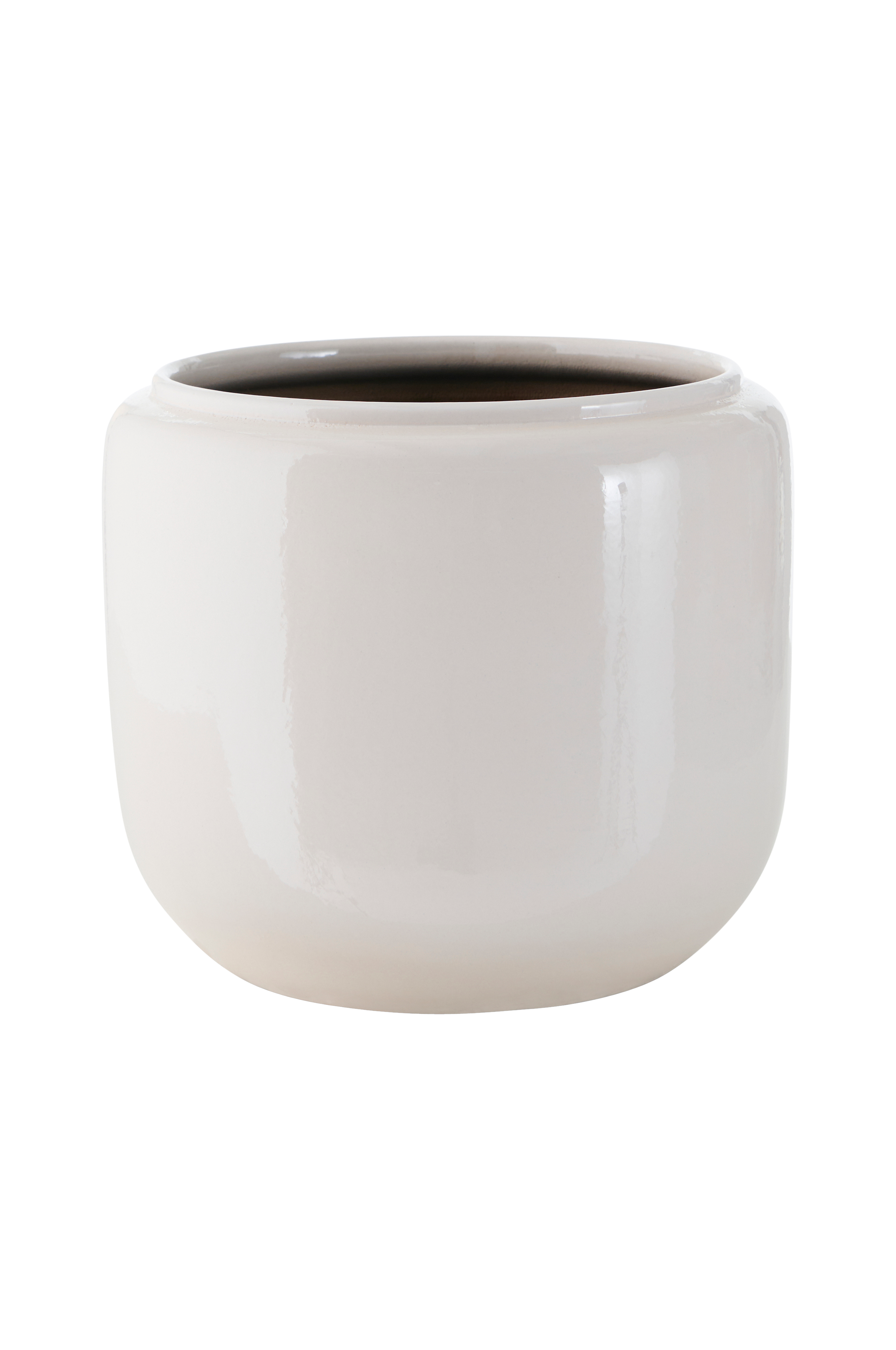 Mått: 21 cm halkaisijaltaan ja 21 cm korkeudeltaan. Materiaali: Keramik. En kruka av lera med blank glasyryta och en spännande, retroinspirerad finish.