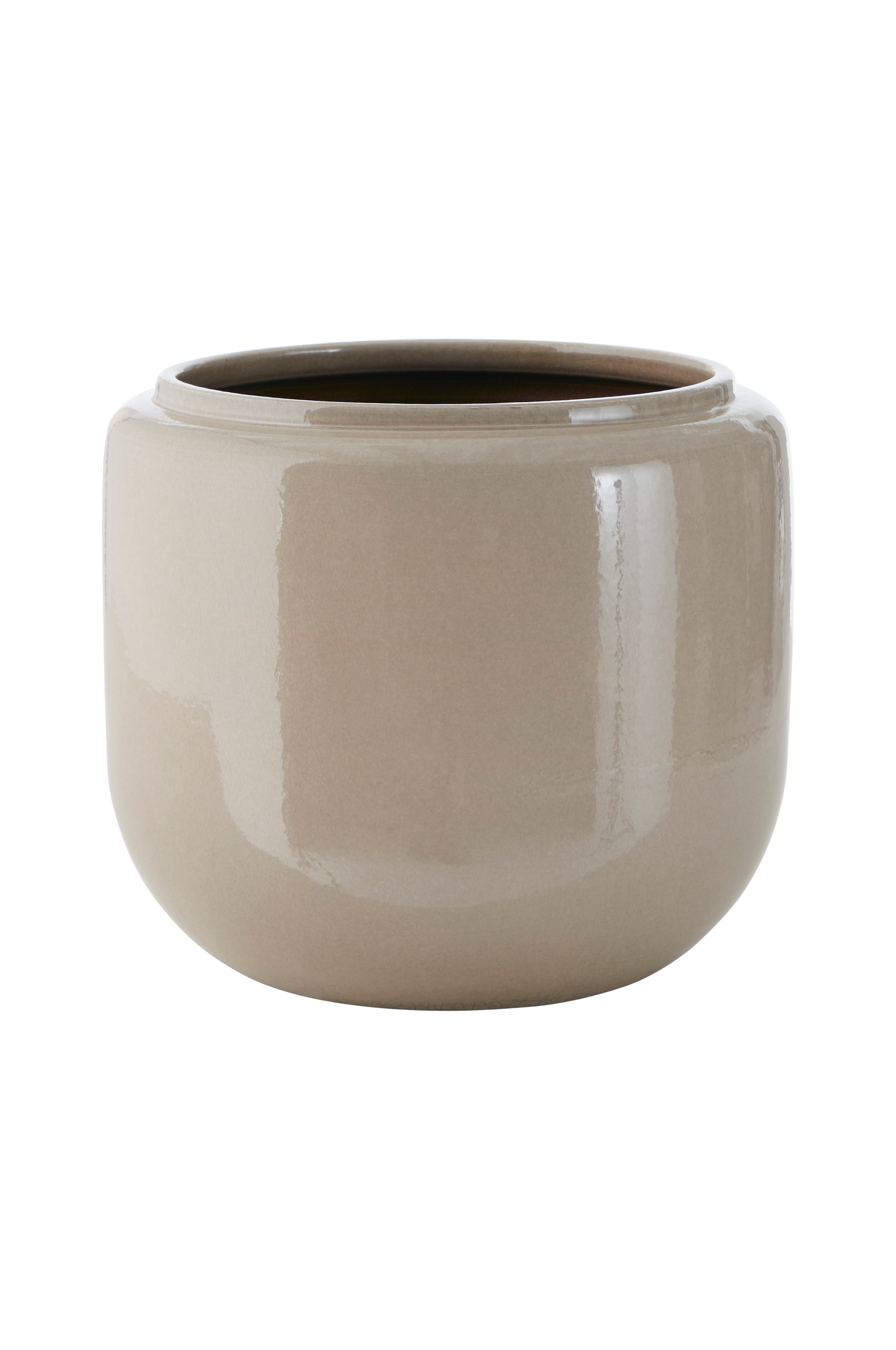 Mått: 18,5 cm halkaisijaltaan ja 19 cm korkeudeltaan. Materiaali: Keramik. Krukan är formad av lera med blank glasering och en cool vintagekänsla.