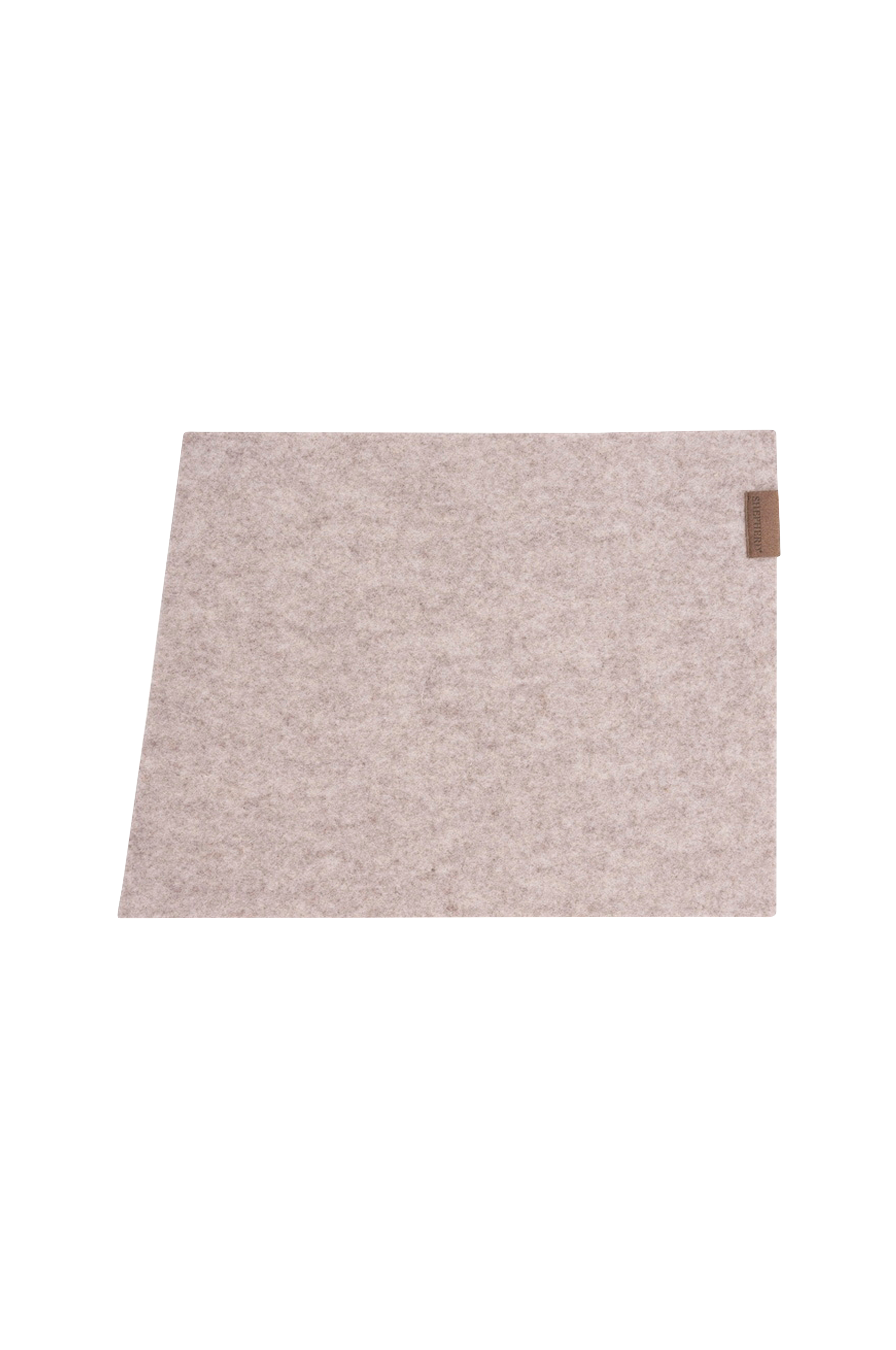 Shepherd Vera. Pöytätabletti huovutettua villaa. Kätevä ja koristeellinen viistosti leikattu lyhyt sivu, jonka ansiosta pöytätabletilla on hyvin tilaa myös lasille.