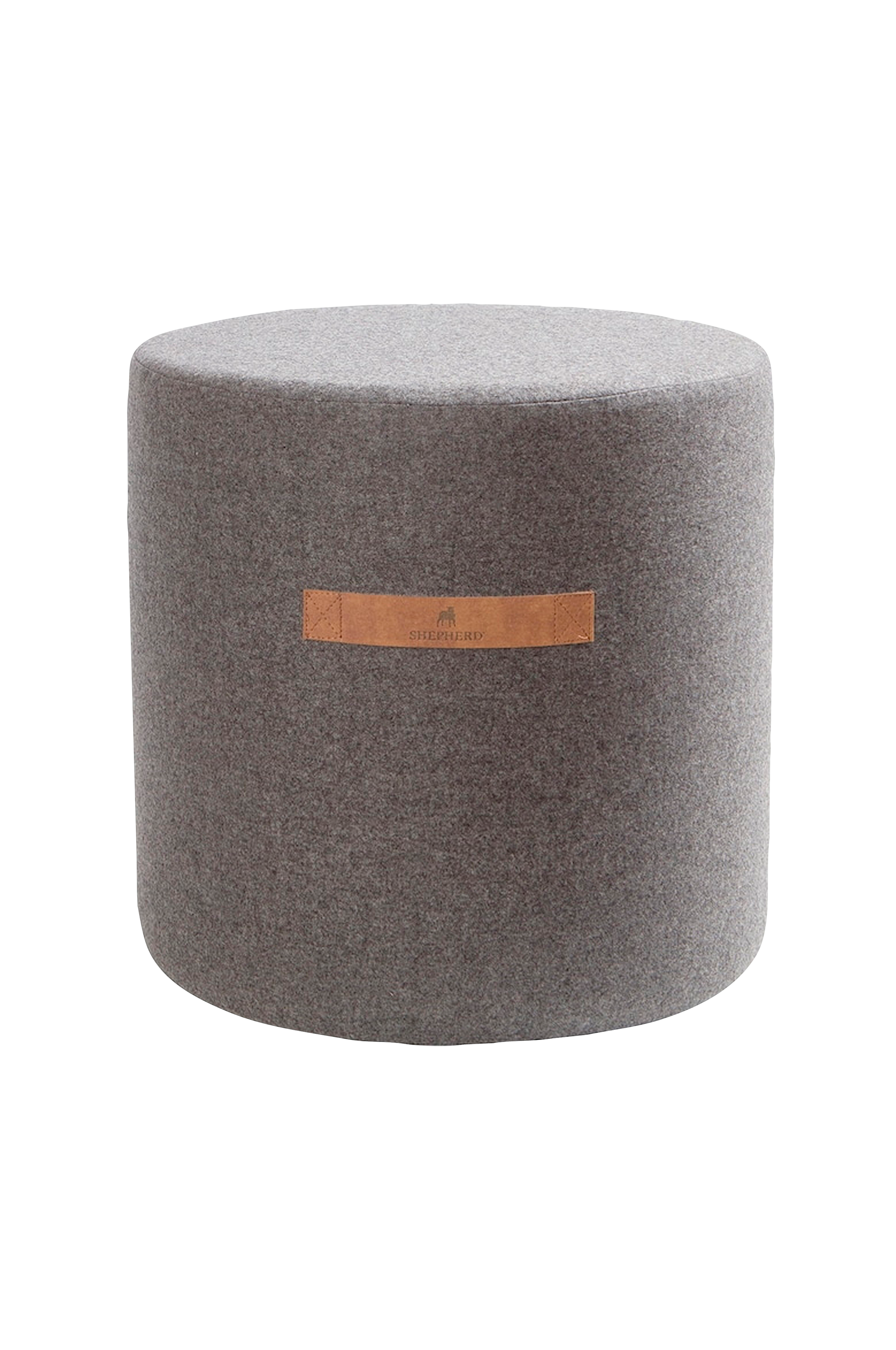 Shepherd Sara. Pyöreä rahi pehmeää villakangasta. Rahissa on kiinteä pohja, joka pitää rahin muodossaan, ja yläosa on mukavuuden takaavaa vaahtomuovia. Koristeellinen kahva nahkajäljitelmää. Rahissa on irrotettava, pestävä päällinen, jonka pohjassa on vetoketju. Pohja kangasta.