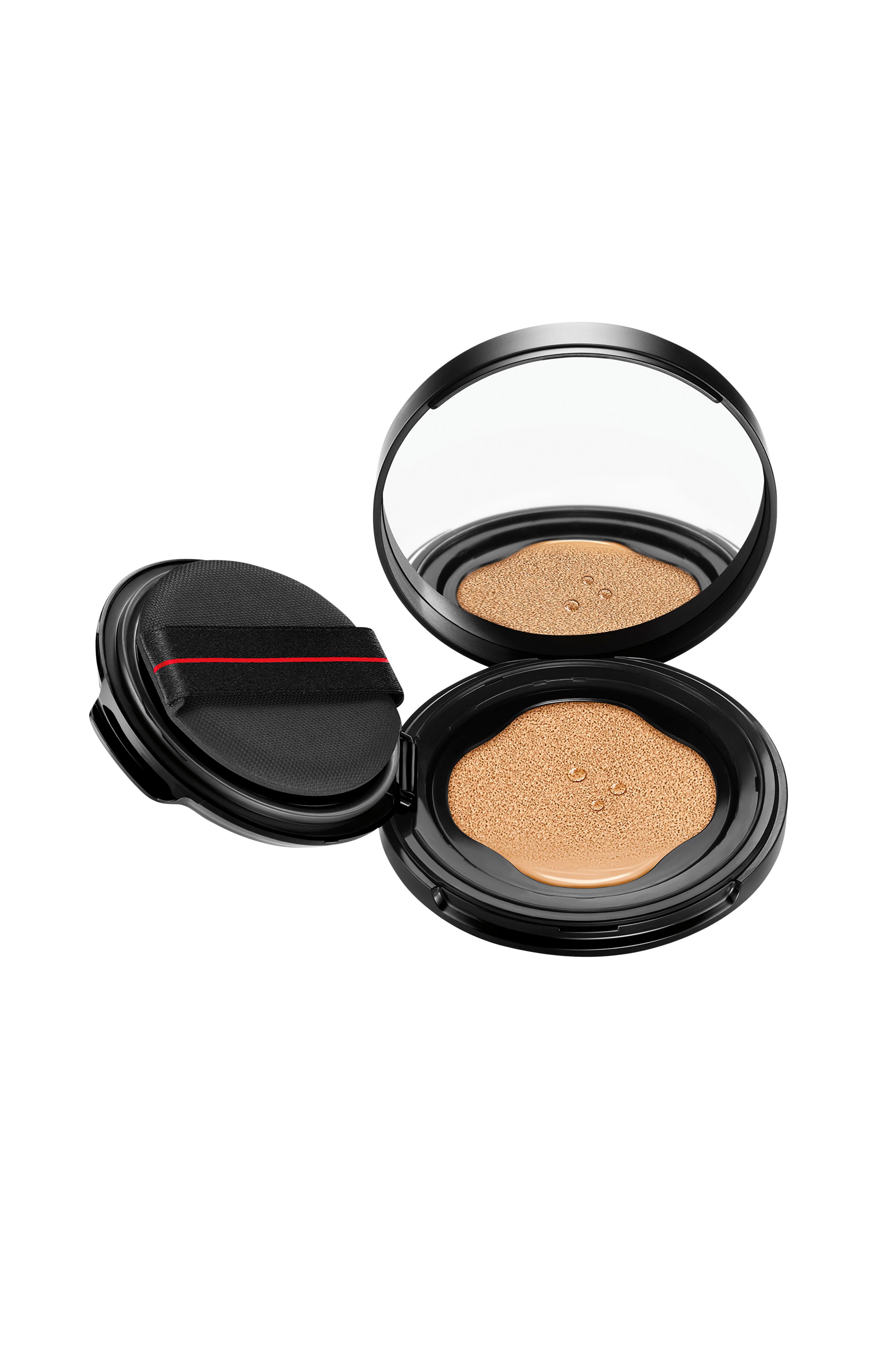 Synchro Skin Self-Refreshing Cushion Compact Foundation -tyynymeikkivoide sulautuu ihoon ja antaa luonnollisen lopputuloksen, joka pysyy noin 16 tuntia. ActiveForce-teknologian avulla se auttaa myös ihoa kestämään lämpöä, kosteutta ja liikettä.