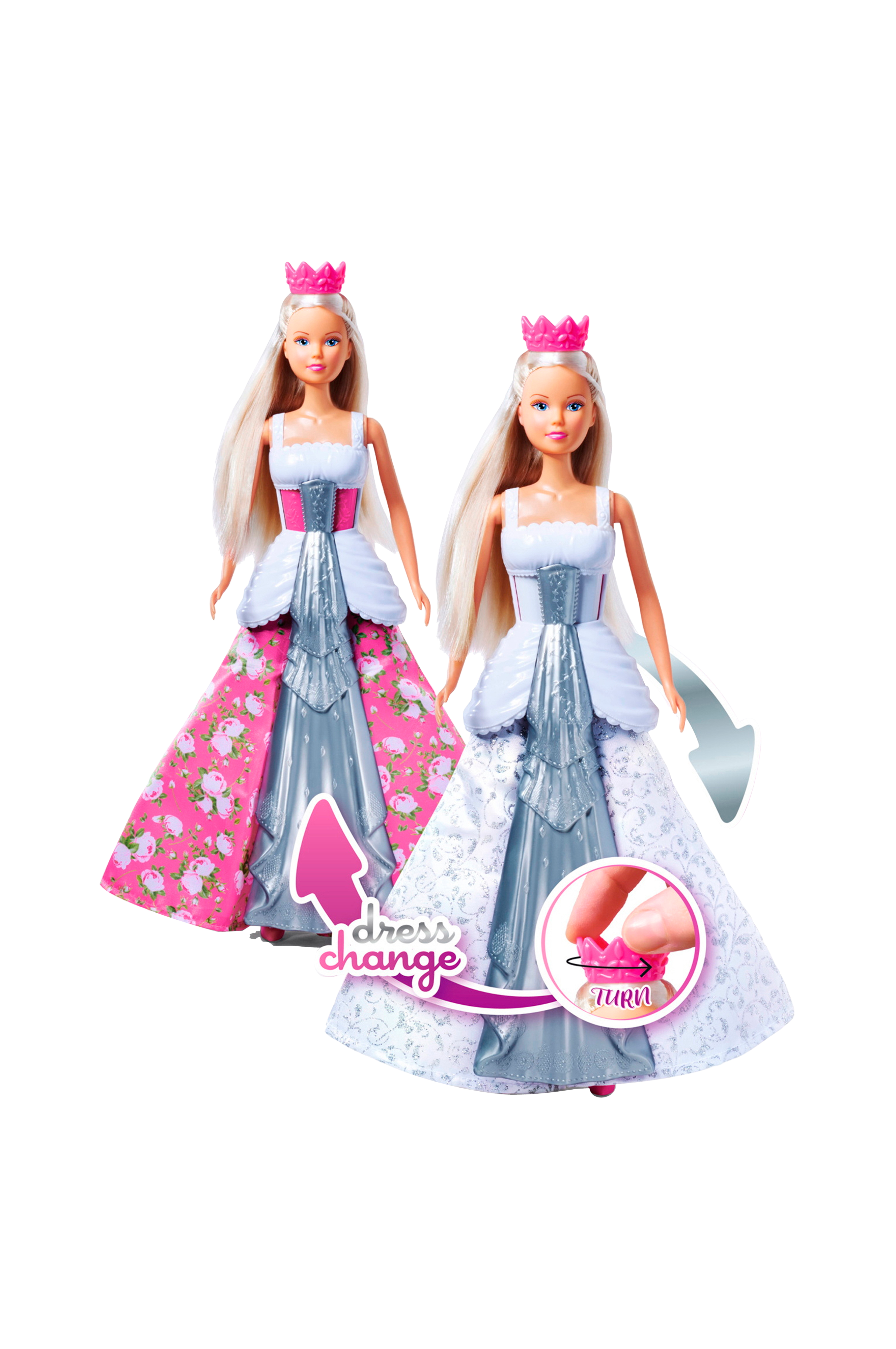 On Steffin hääpäivä!Hän on pukeutunut kauniiseen mekkoon, joka vaihtaa taianomaisesti väriä valkoisesta roosaan, kun käännät Steffin kruunua.
