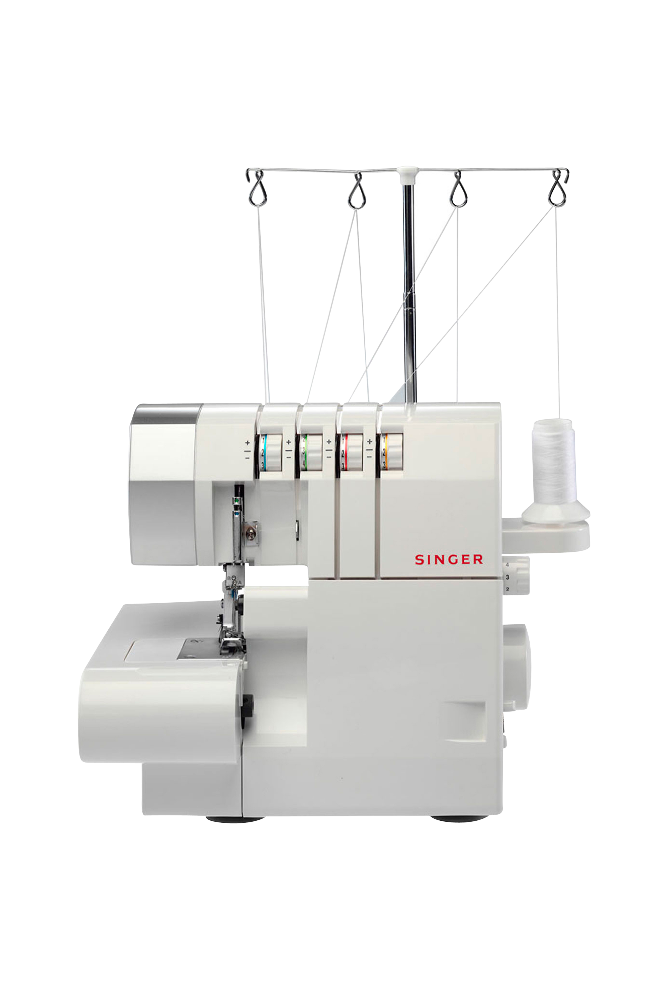2/3/4 -lankaiset ompeleet. Saumuri ompelee, leikkaa ja huolittelee sauman yhdellä kertaa. 2 neulan asentoa. 4-lankainen. Vapaavarsi. Helppo langoitus värikoodein.