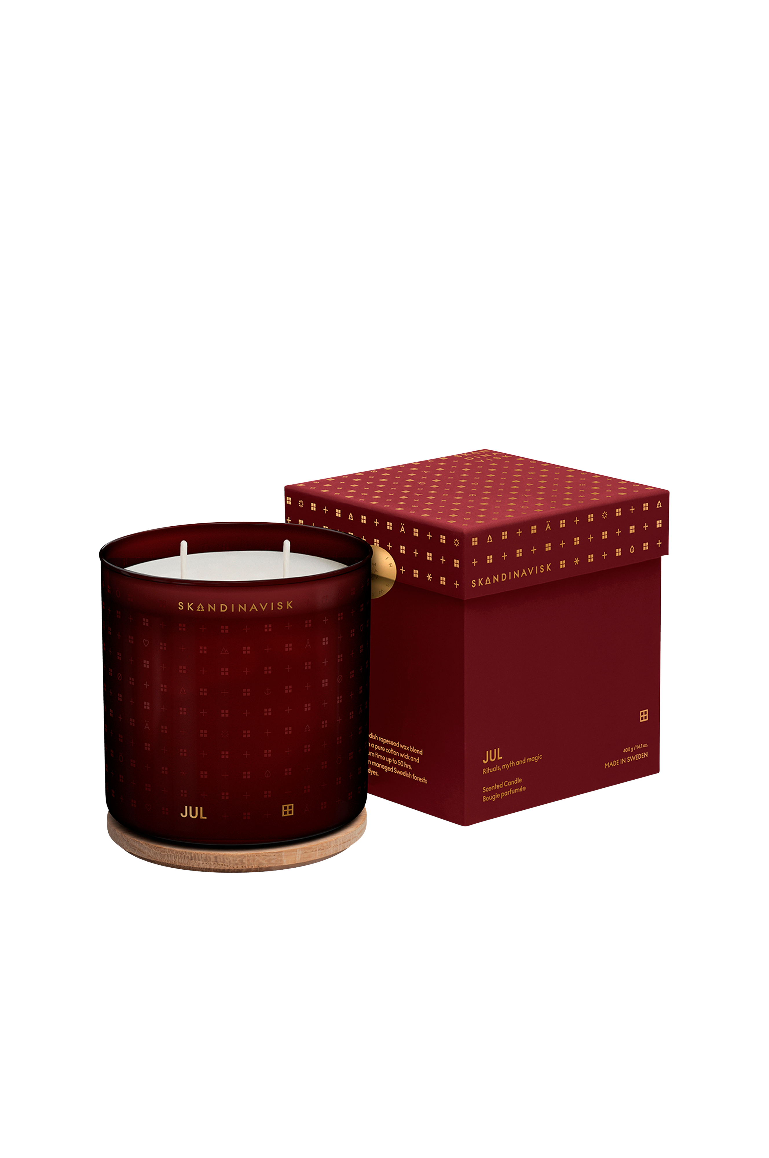 Tammikannella varustettu tuoksukynttilä on valmistettu Ruotsissa ruotsalaisesta rapsivahasta ja kaiverrettu kansi FSC-sertifioidusta tammesta.