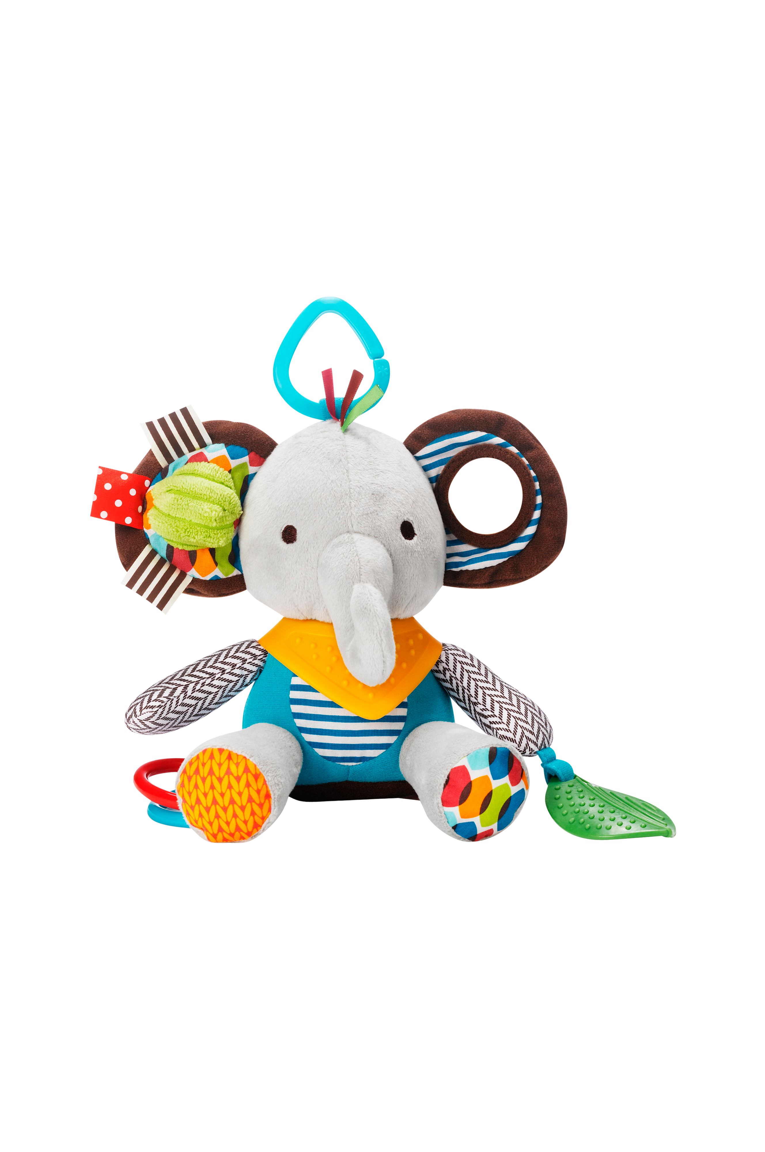- Helppo kiinnittää esim. lastenvaunuihin pään päällä olevan muovirenkaan avulla.