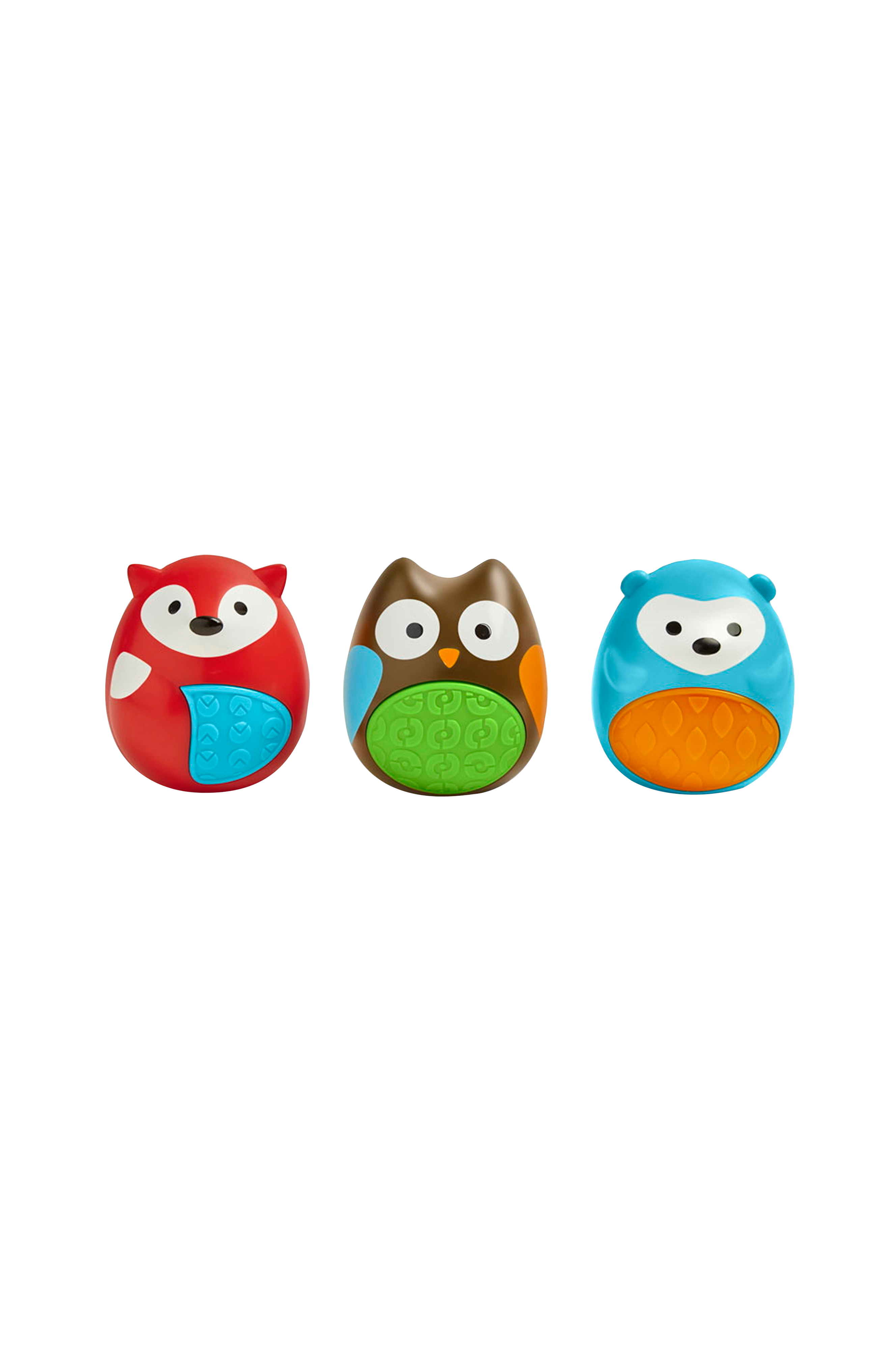 Lapsen ensimmäiset musiikki-instrumentit! Kolme helistineläintä, joihin on helppo tarttua pienillä käsillä. Jokaisessa erilainen ääni.