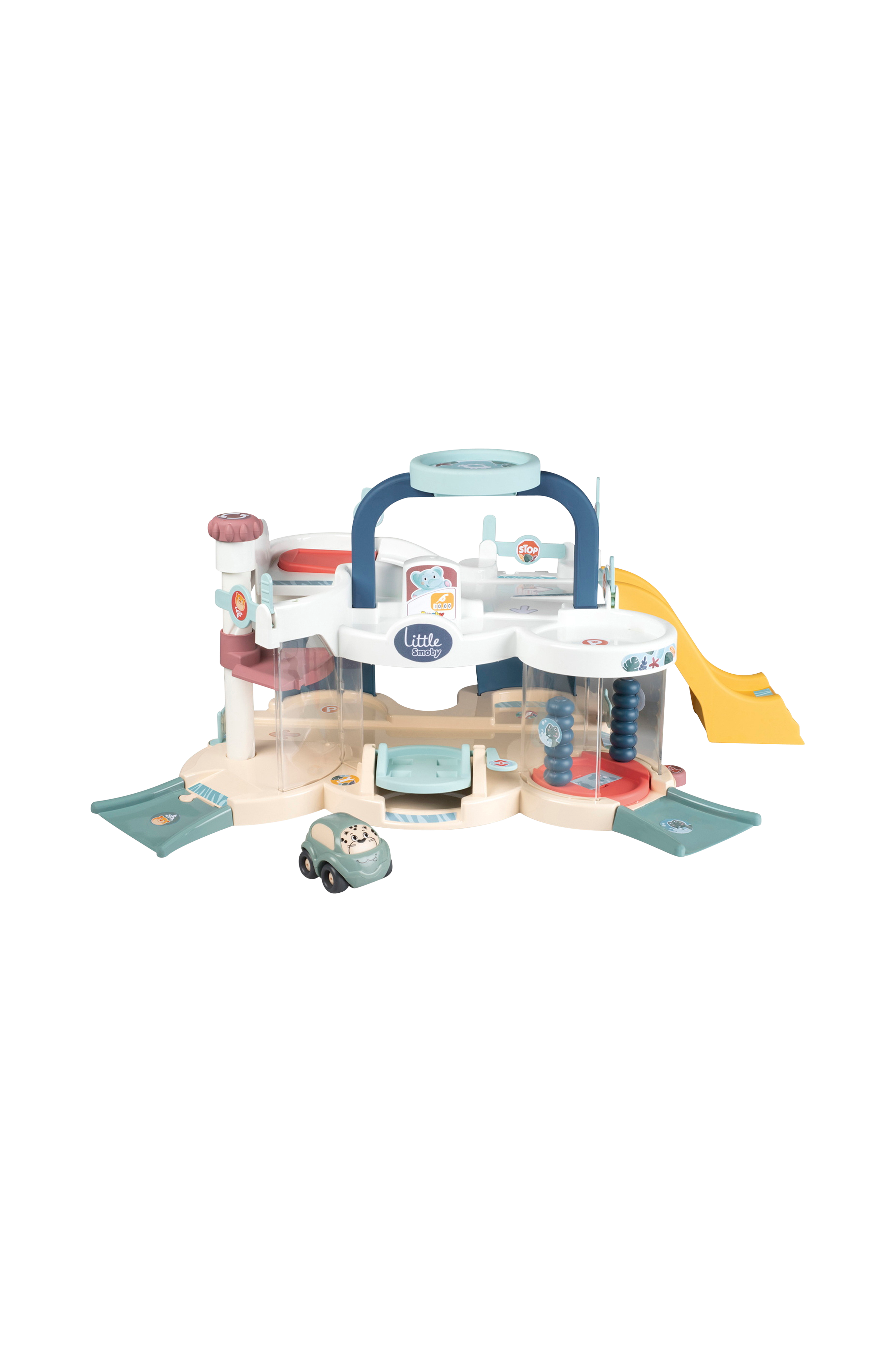 Parkkihalli ja autopesula, jossa muotoonpuhalletut rullat. Mukana yksi ajoneuvo. Parkkihallissa on korjausalusta, bensiinipumppu ja helikopterikenttä.Tarjoaa mielikuvituksellisia leikkejä tuntikausiksi.