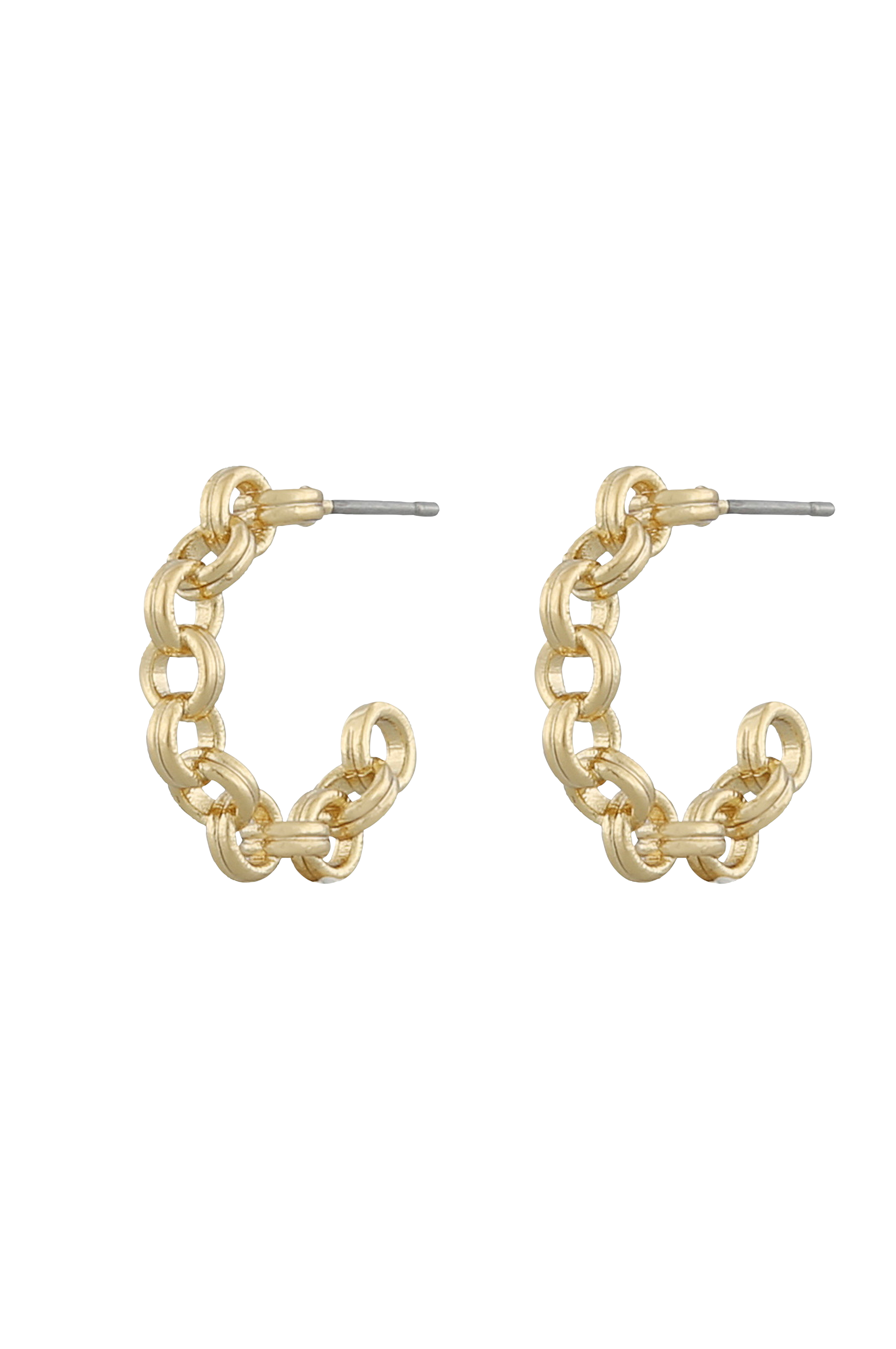 Ketjumaiset korvakorut. Halkaisija noin 15 mm. Kullattua messinkiä.