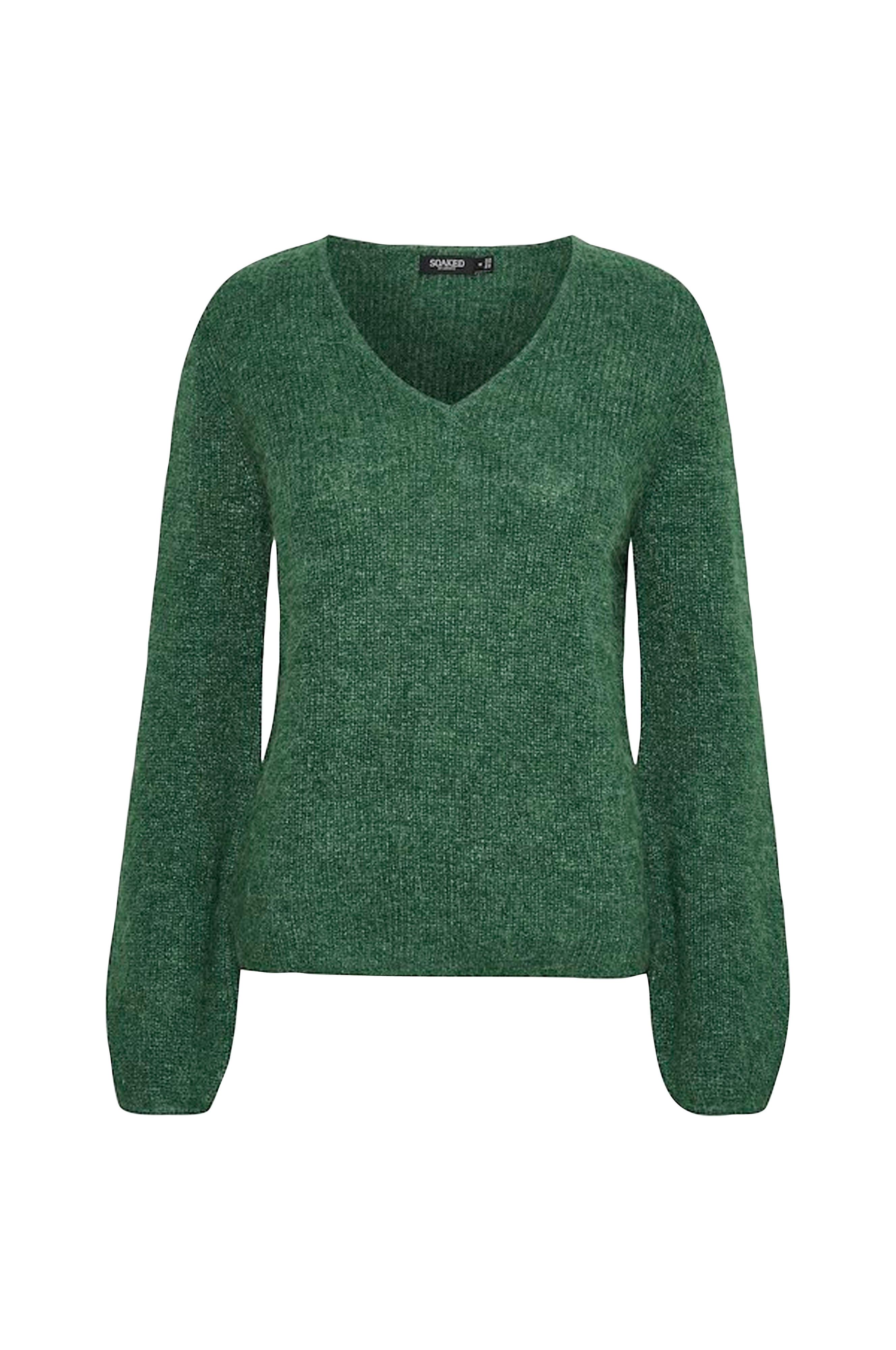 Soaked in Luxury slTuesday V-Neck Jumper LS -neulepusero hieman nukkapintaista villa-alpakkasekoitetta. Suora kapea malli, V-pääntie edessä, väljähköt hihat ja kapeat hihansuut.