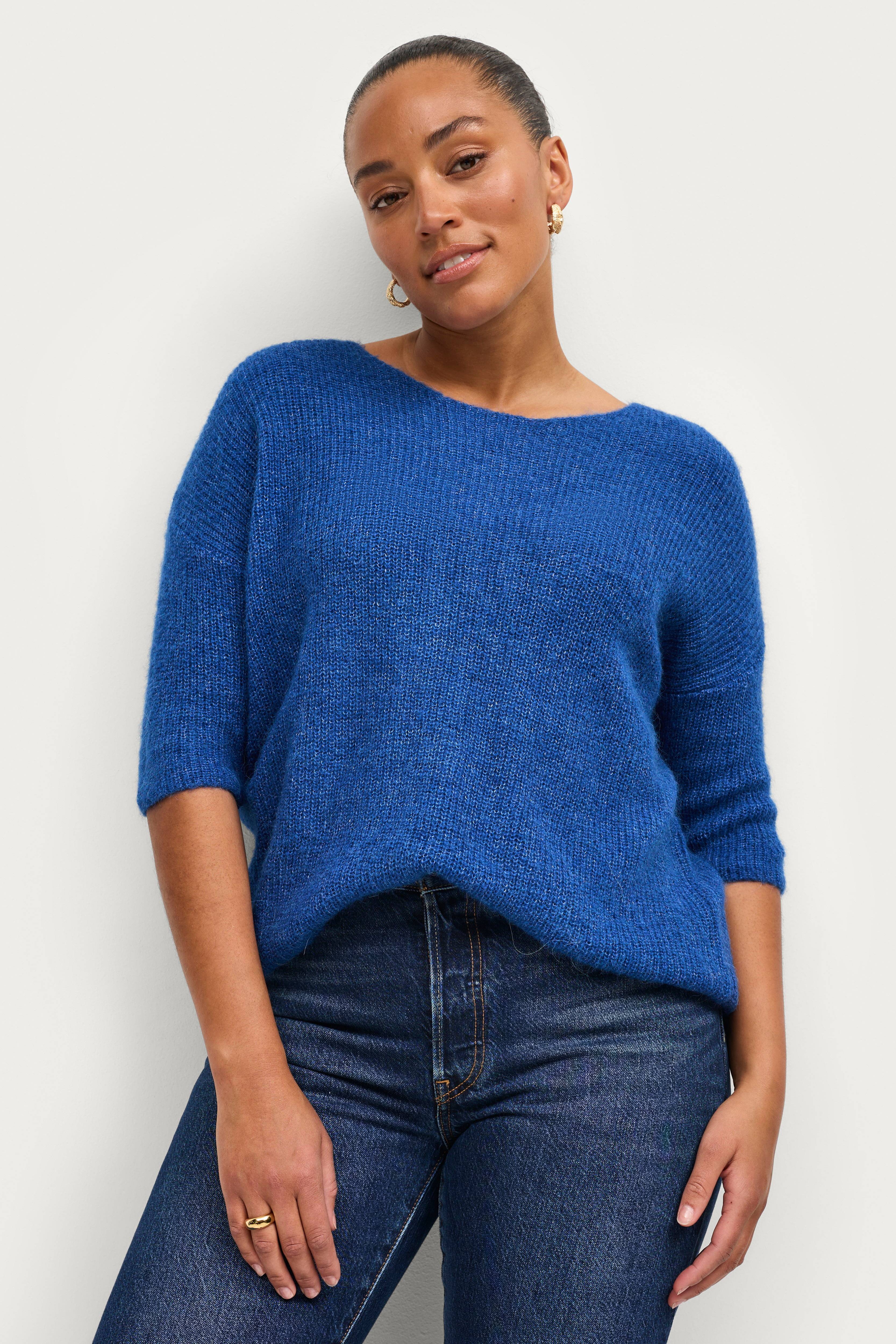 Soaked in Luxury Tuesday Jumper -neulepusero, jossa lyhyt ja väljä malli. 3/4-pituiset hihat, joissa madallettu olkasauma. Neulottu villasekoitetta, jossa hieman pörröinen pinta.