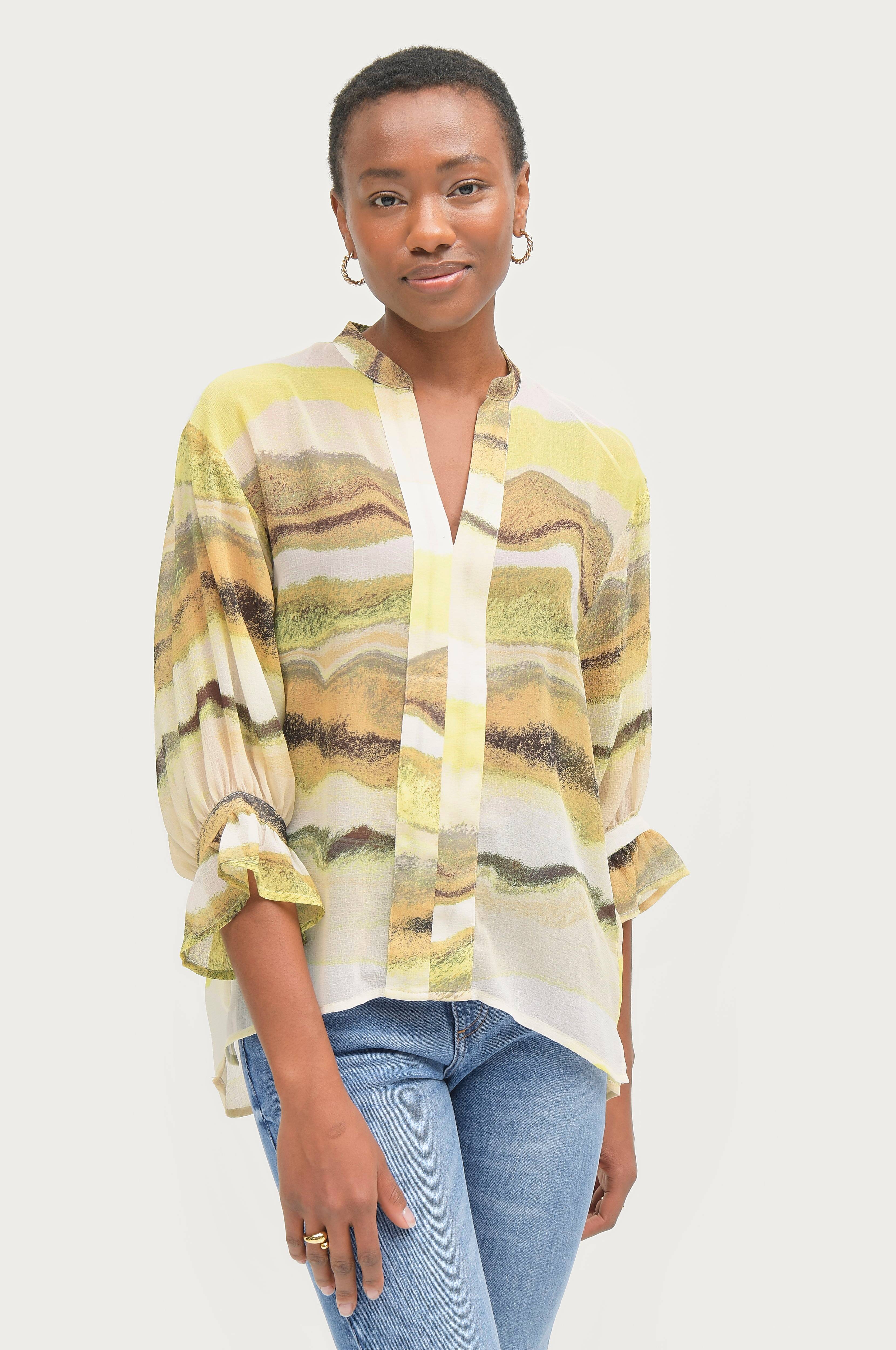 • Leveät, 3/4-pituiset hihat röyhelöllä hihansuissa