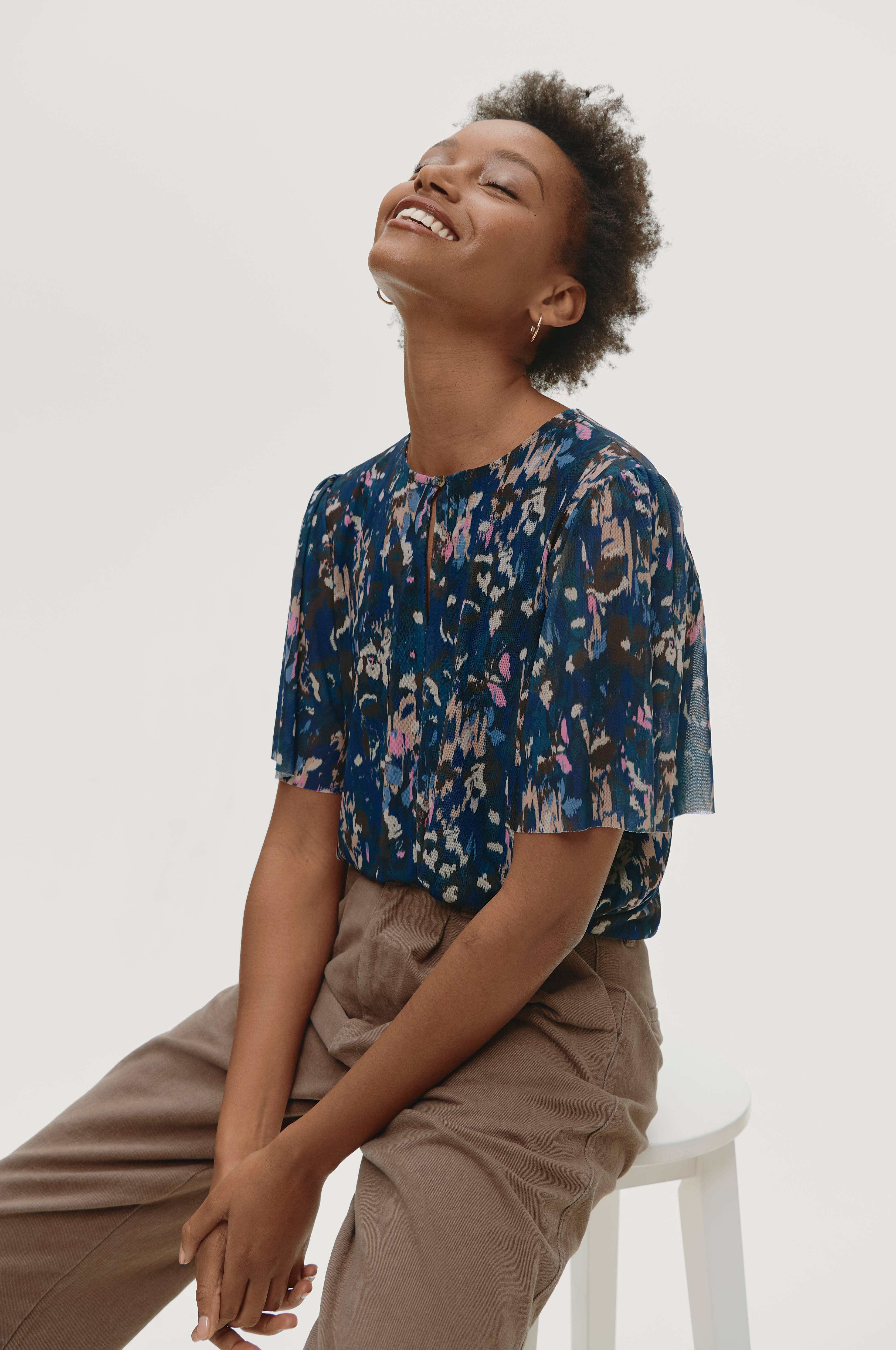 Soaked in Luxury slPoppie Top -pusero. Suora malli kuviollista verkkokangasta. Lyhyet ja leveät hihat, joissa poimutus olkapäillä. Pyöreä pääntie, jossa pieni halkio ja nappi edessä. Yksivärinen vuori.