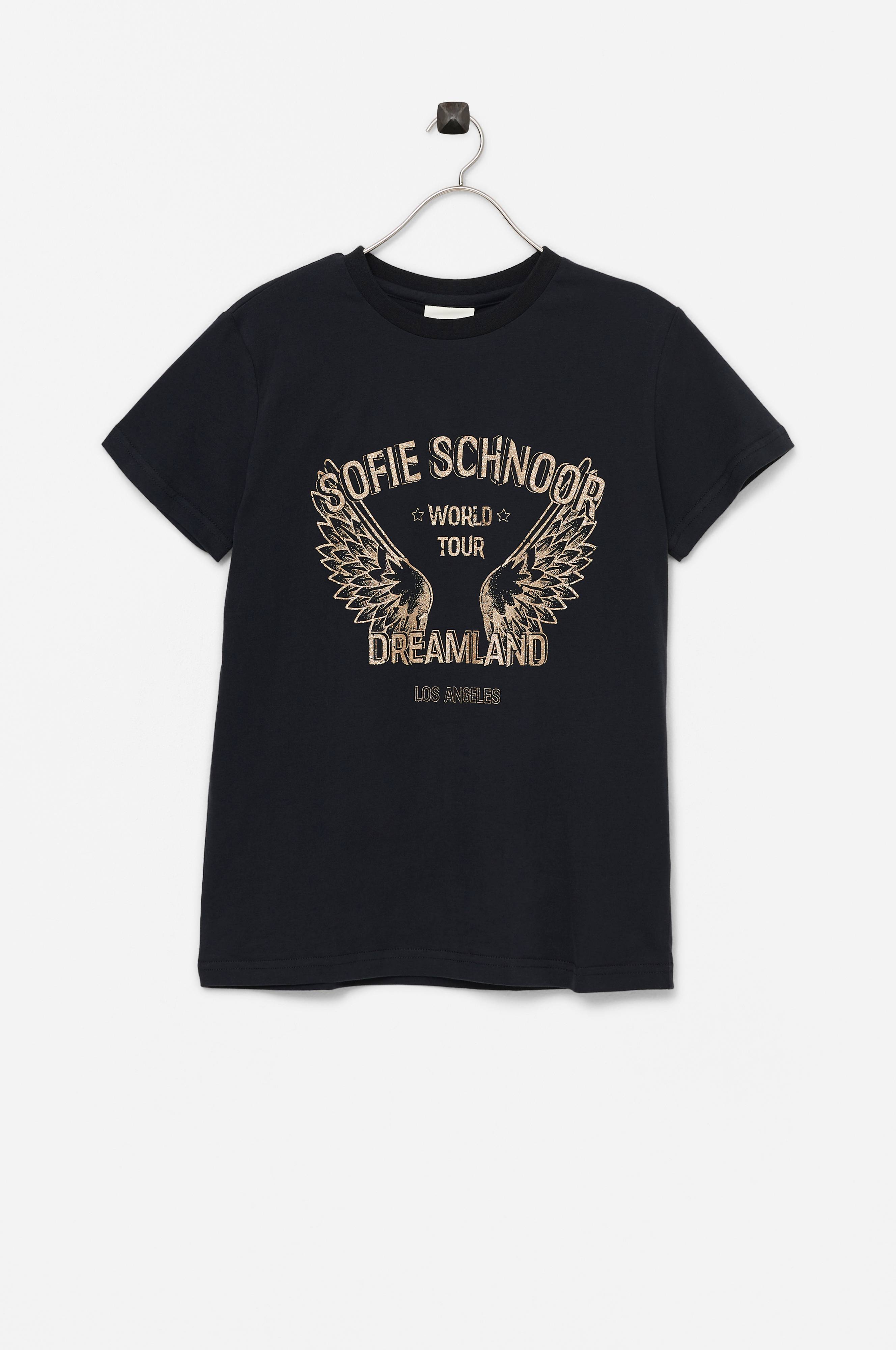 • Pyöreä, resorimainen kaula-aukko• Kultakimaltava printti edessä