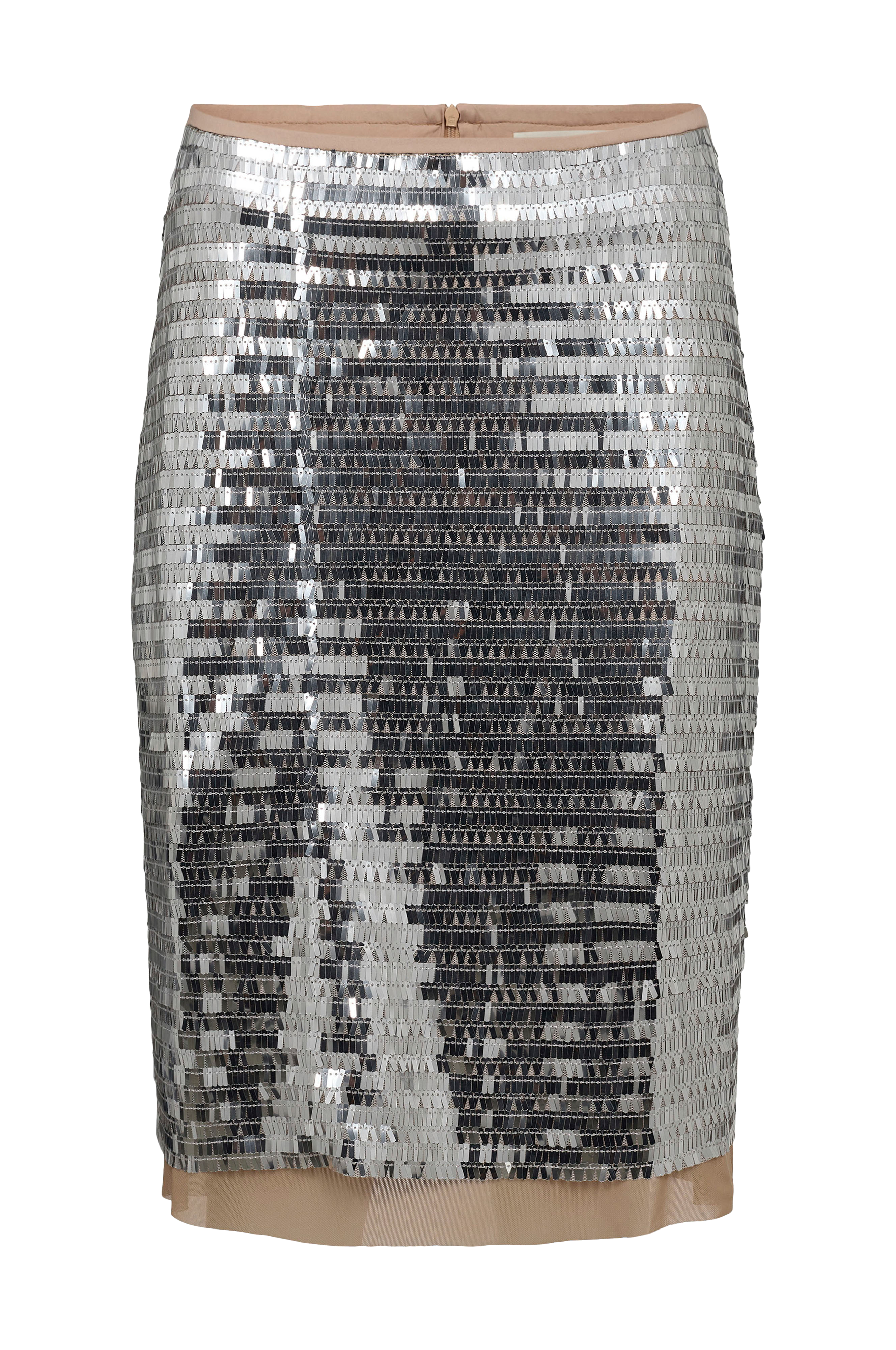 • Hame paljeteilla• Suora, kapea istuvuus• Kätketty vetoketju takaosa• Mesh-kangasvuori• Pituus: 58 cm koossa 36