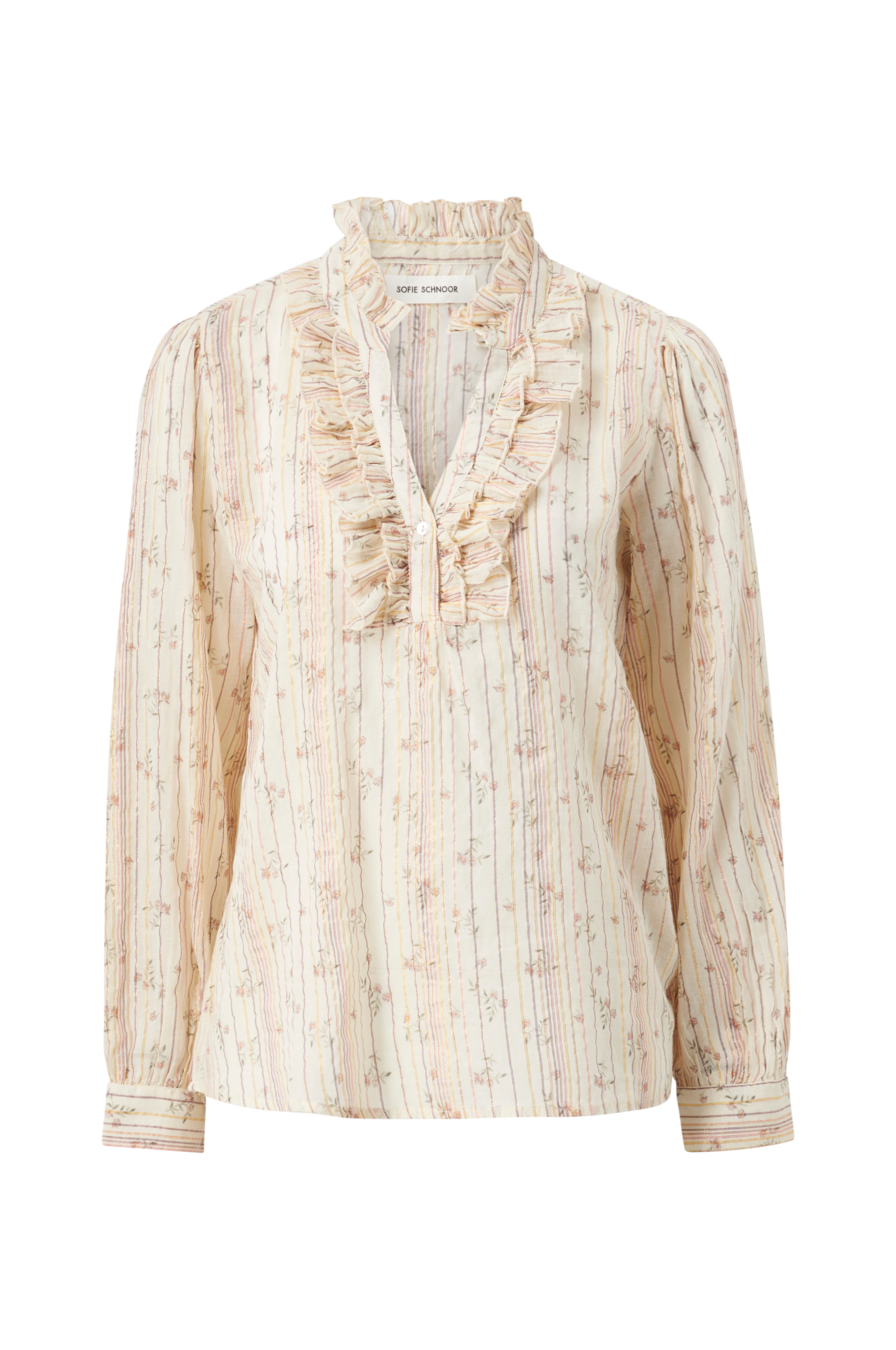 • V-kaula-aukko röyhelöillä ja napilla edessä