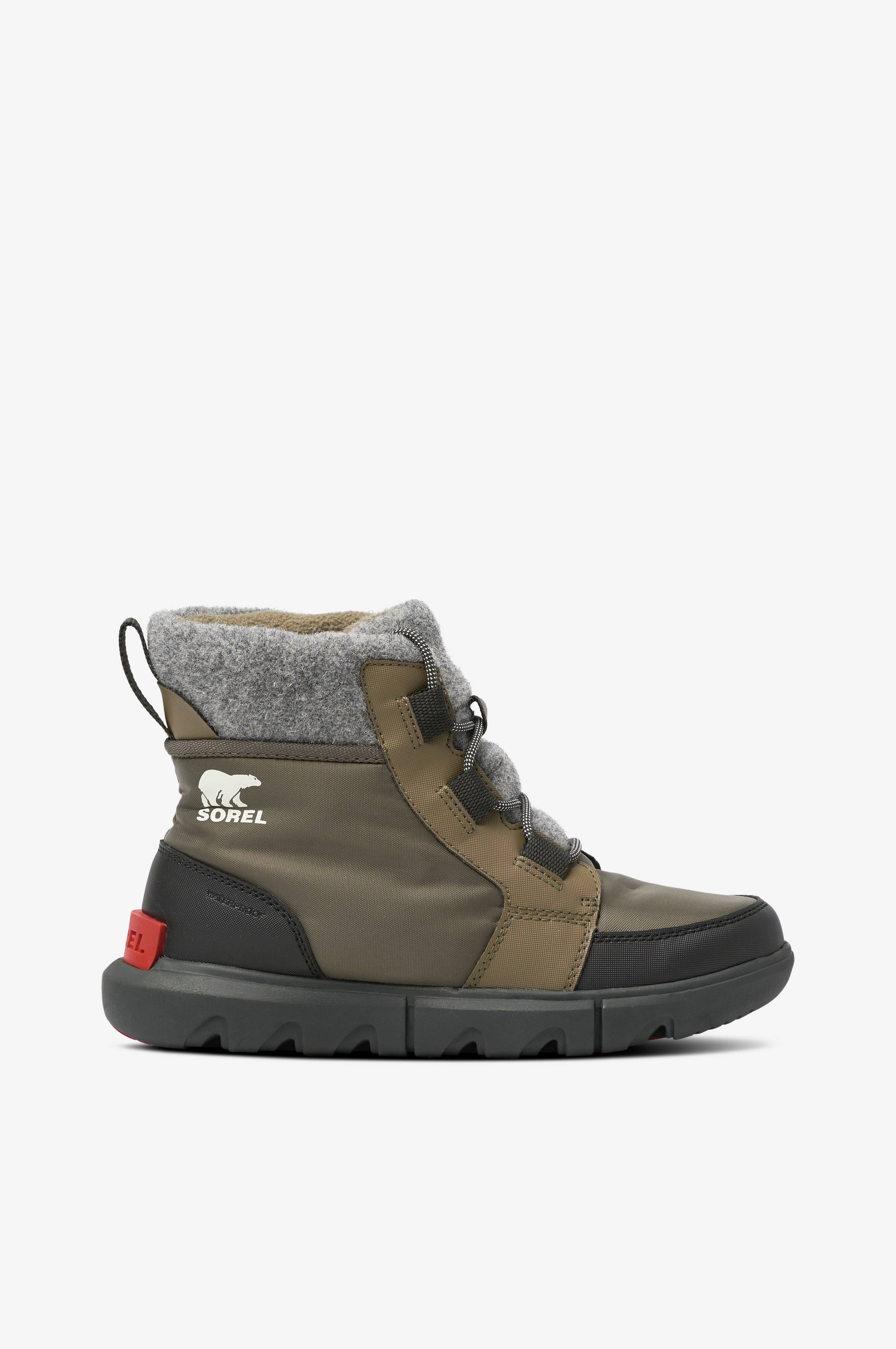 Lämminvuoriset ja kevyet Sorel-talvikengät, joiden päällinen kestävää ja vedenpitävää nailonia. Pehmeä ja miellyttävä mikrofleecevuori. Varren reunassa huovutettua materiaalia. Läpässä lumilukko. Nyöritys kulkee isojen metallisilmukoiden läpi. Vetolenkki takana. Irrotettava sisäpohja ja hyvin pitävä kumiulkopohja. Varren korkeus n. 13 cm.