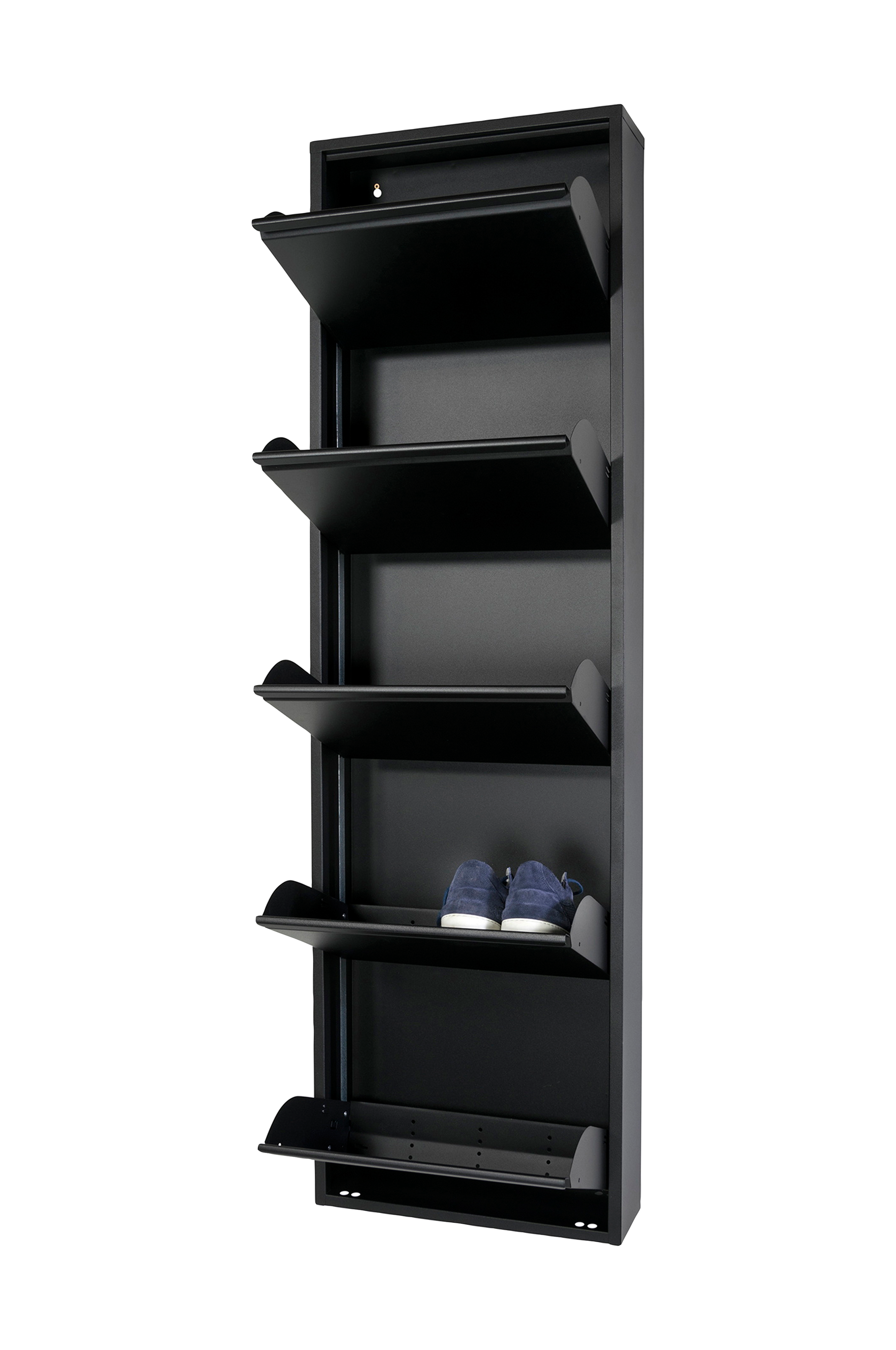 Jauhemaalatusta teräksestä valmistettu tyylikäs ja matala Billy 5 -kenkäkaappi on tyylikäs ratkaisu yleiseen ongelmaan: ympäriinsä lojuviin kenkiin. Monikäyttöinen kenkäkaappi, jota on saatavana useassa eri koossa ja joka on käytännöllinen katseenvangitsija sekä lattialla että seinällä. Billy 5:ssä on tilaa noin 10 kenkäparille, ja sitä on saatavana useissa eri väreissä.