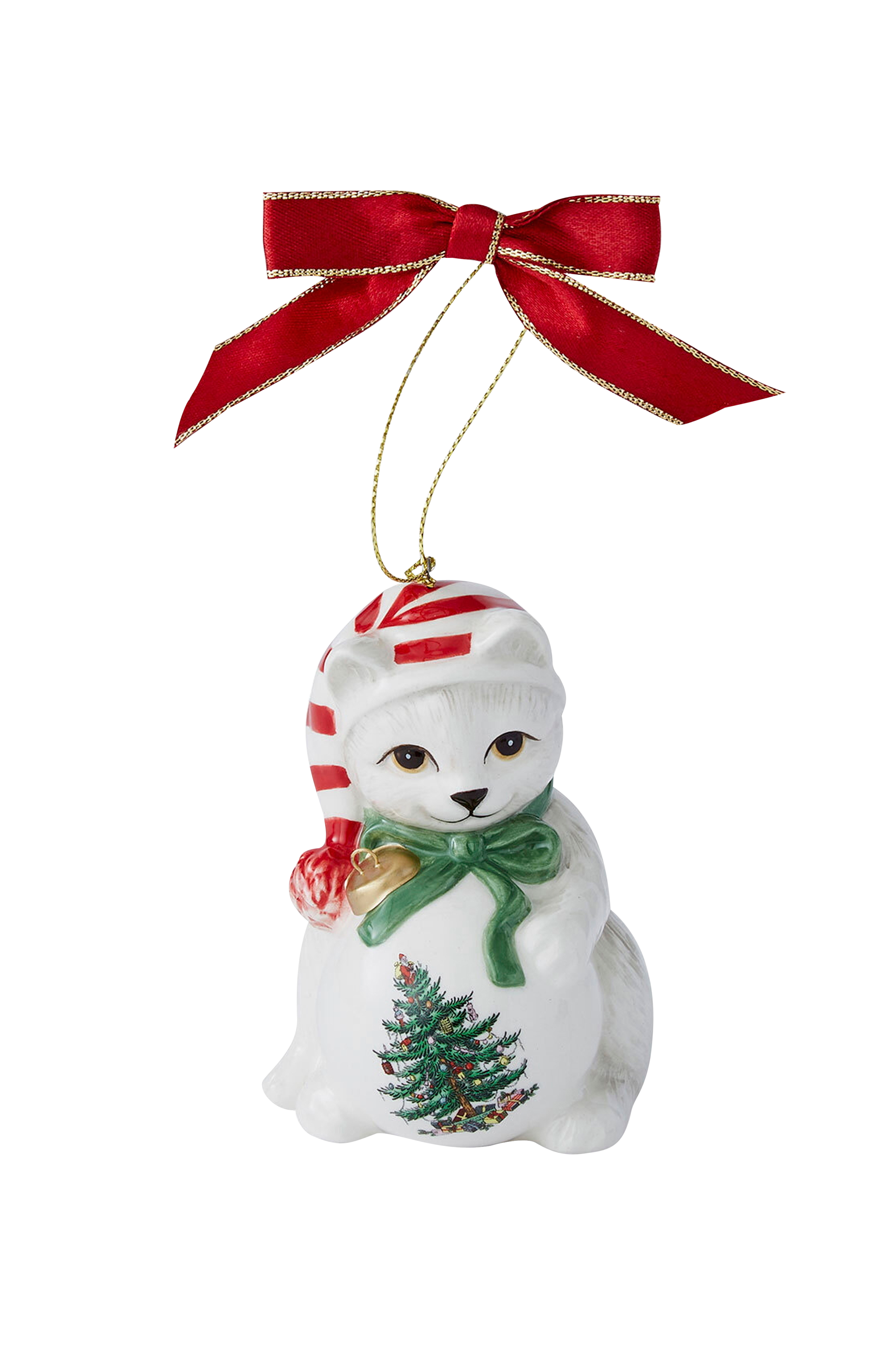 Luo joulutunnelmaa kissanpennun muotoisella koristeella, jossa ilkikurinen pentu leikkii joulukuusenpallolla. Kullanvärinen ripustusnaru ja punainen rusetti. Hemmottele itseäsi tai yllätä joku läheinen tänä jouluna.