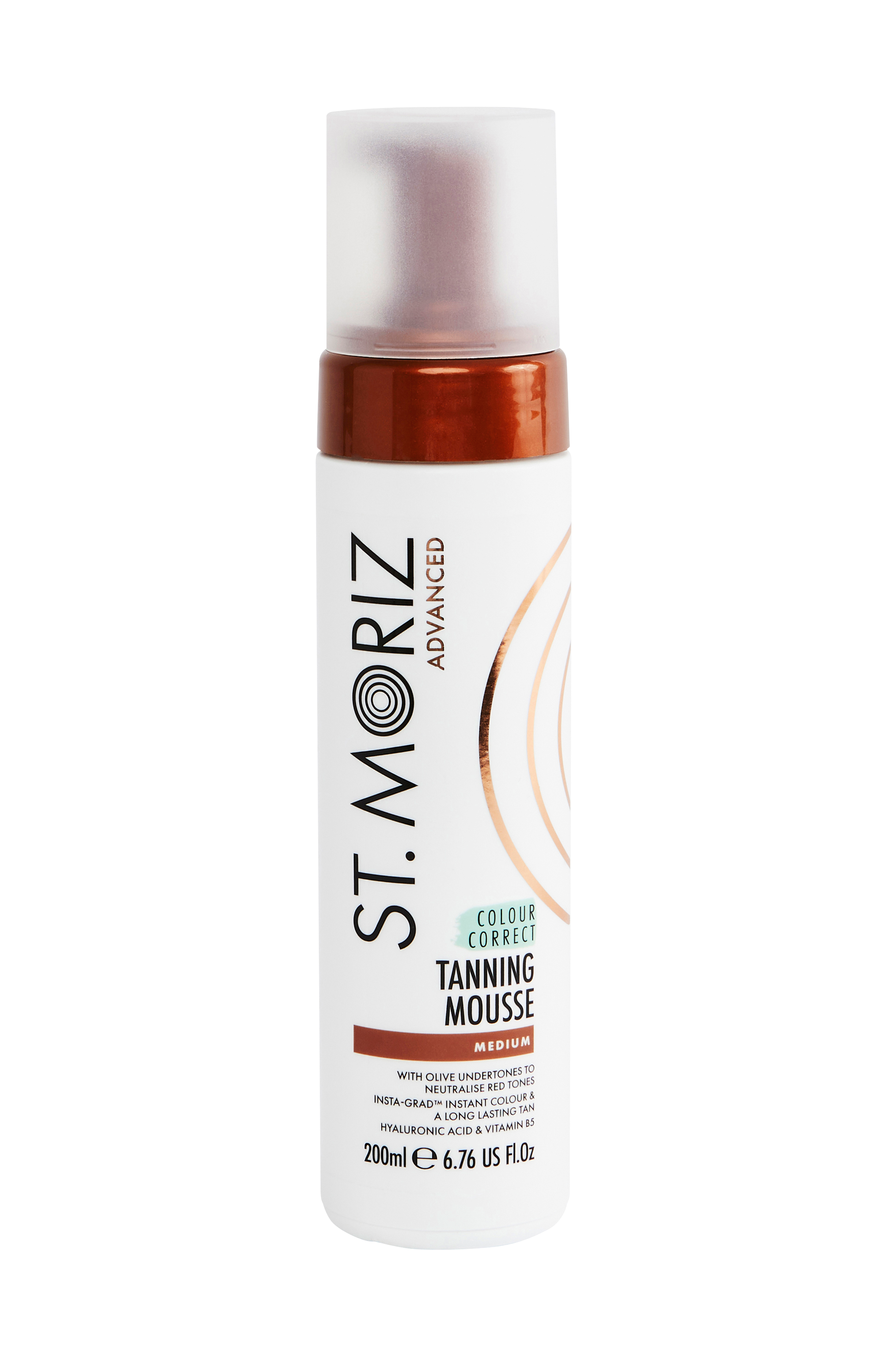 St. Moriz Colour Correcting Tanning Mousse Medium -tuotteessa on värinkorjaustoiminto, jossa oliivinväriset pohjasävyt neutraloivat ihon punaisia sävyjä. Kamomilla ravitsee herkkää ihoa antaen sille upean hehkun. Tahraamaton opasväri kestää koko päivän, minkä jälkeen se huuhdellaan pois jättäen kestävän ja luonnollisen päivettyneen sävyn. Hyaluronihappo ja B5-vitamiini antavat pitkäkestoisen kosteutuksen samalla kun ihosta tulee silkinpehmeä. Colour Correcting Tanning Mousse Medium sopii parhaiten iholle, jossa on punainen pohjasävy luonnollisen värin saamiseksi. Sopii normaalille ja rasvaiselle iholle sekä sekaiholle.