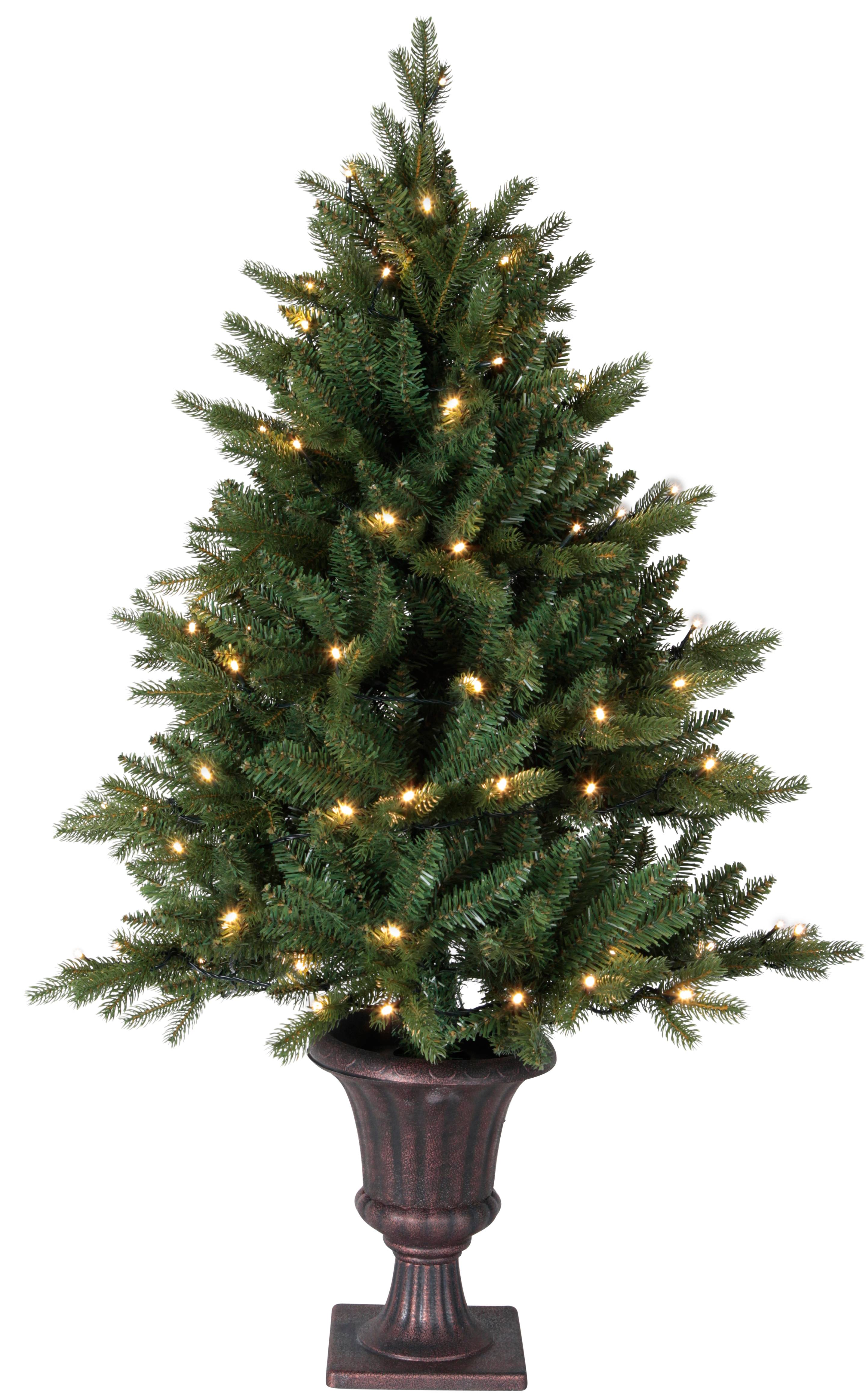 Erittäin koristeellinen kuusi valaistuksella ja ruukulla. Hyvin tehty, mutta sopii todennäköisesti parhaiten sisäkäyttöön, koska ruukku on liian kevyt seisomaan ulkona.