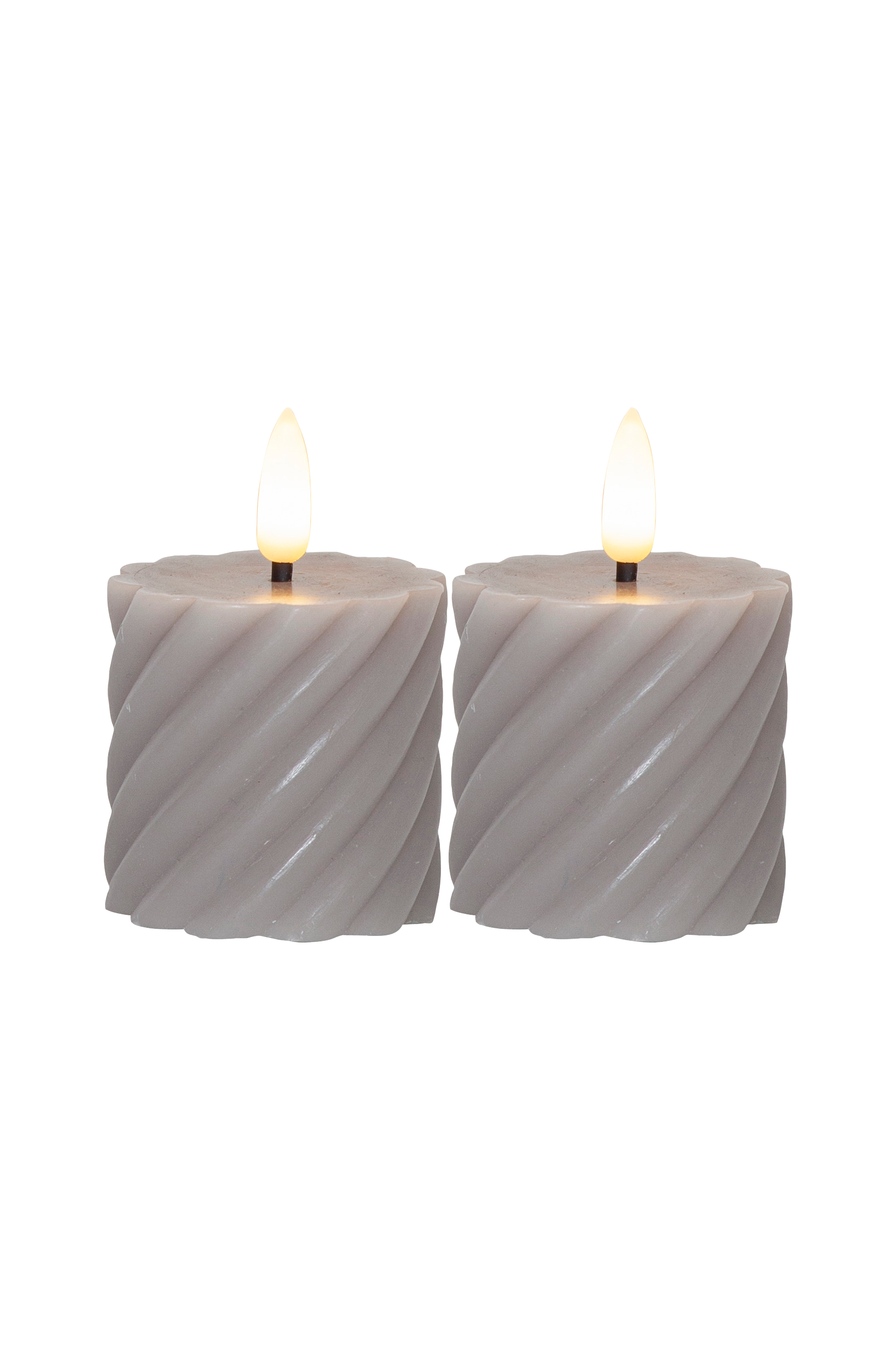 Votiivikynttilät, 2/pakkaus. Kierrettyä vahaa. Kuuluvat Flamma-sarjaan. Aidonnäköisessä liekissä on lämmin valo. Sisäänrakennettu ajastintoiminto. Päällä 6 h, poissa päältä 18 h ja niin edelleen. Korkeus liekin kanssa noin 7,5 cm, leveys 5 cm. Keskikäyttöikä 5000 h. Kokonaisteho (W): 0,03 W