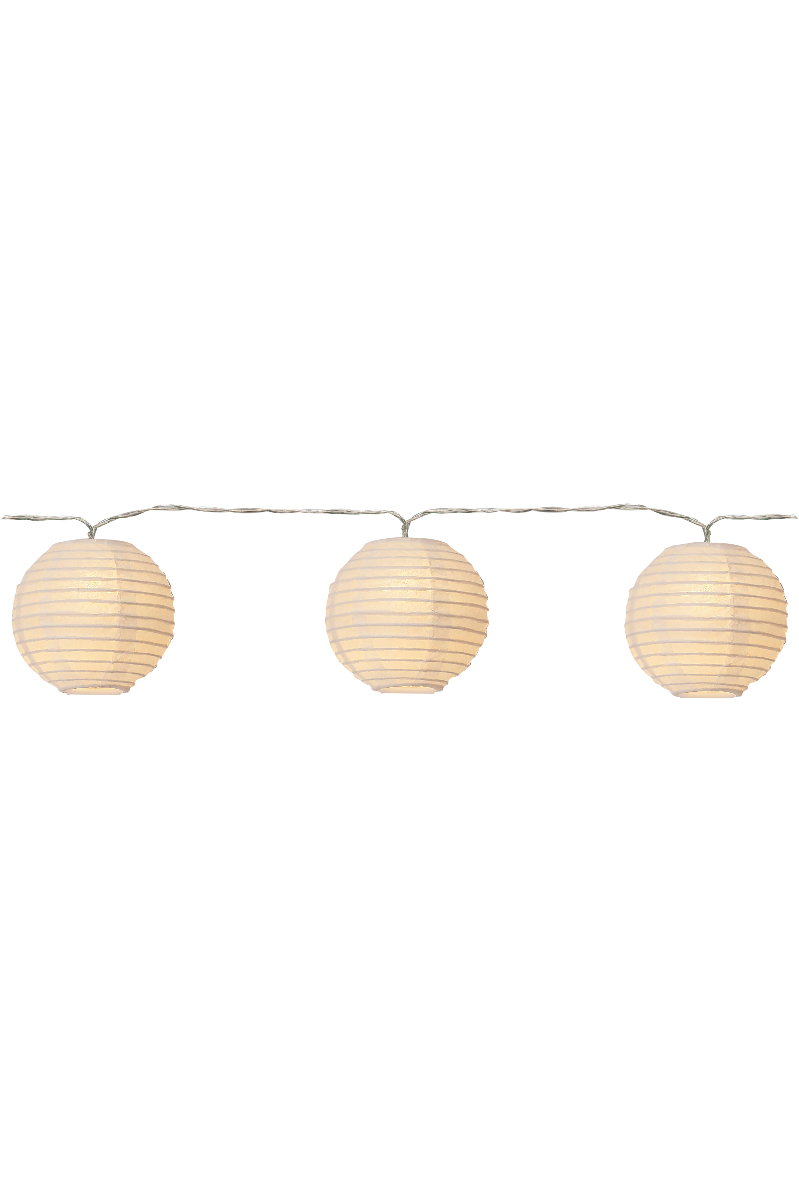 Riisipalloilla koristeltu kaunis valoköynnös sisäkäyttöön. Valoköynnöksessä on 10 lämpimän valkoista LED-valonlähdettä. Ihana valoköynnös sopii sekä arkeen että juhlaan. Leveys/pituus: 135 cm, korkeus: 7 cm, syvyys: 7,50 cm