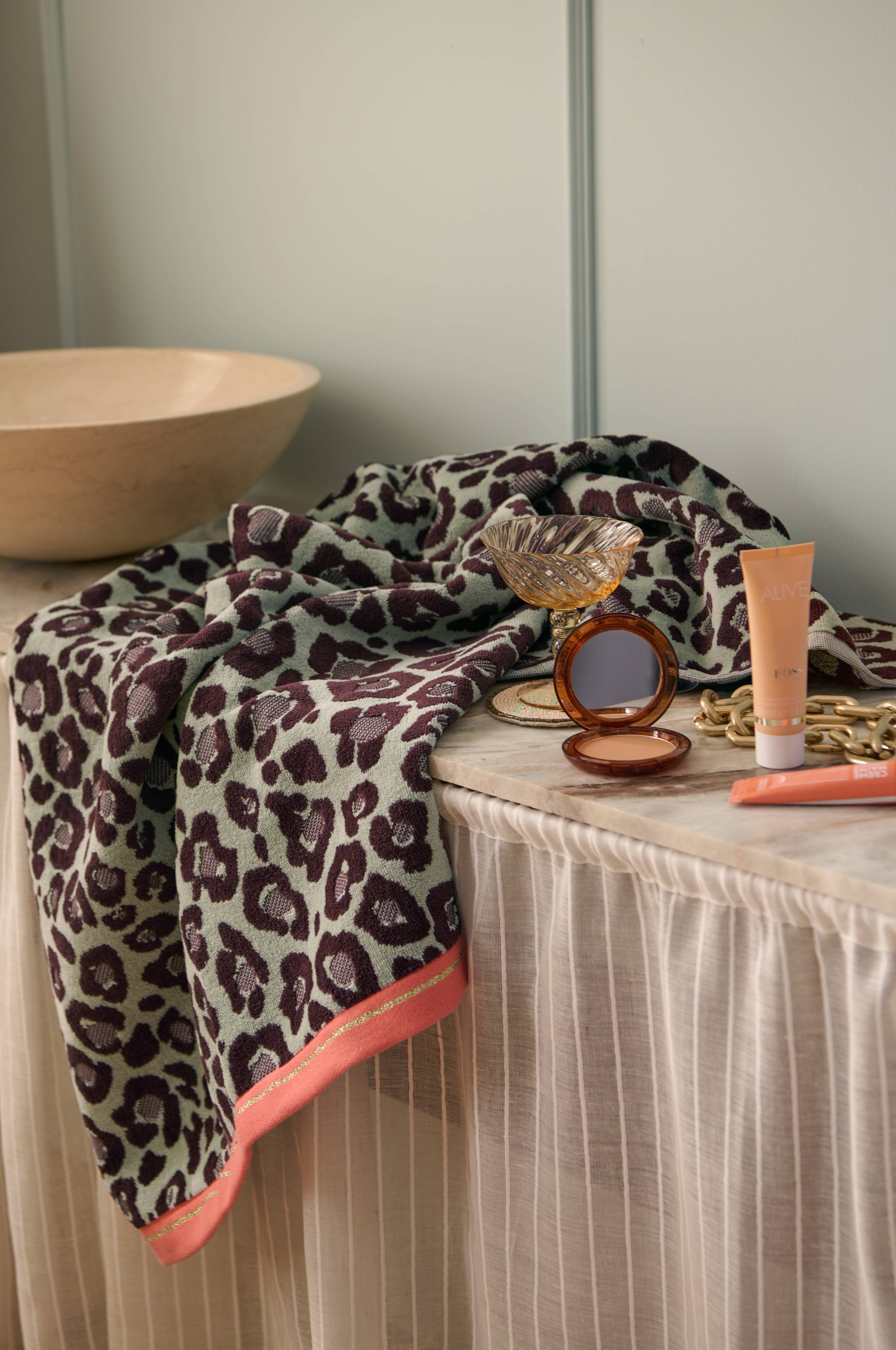 • Jacquard-neuloksinen kylpypyyhe pehmeästä veluurista takaosalla froteesta