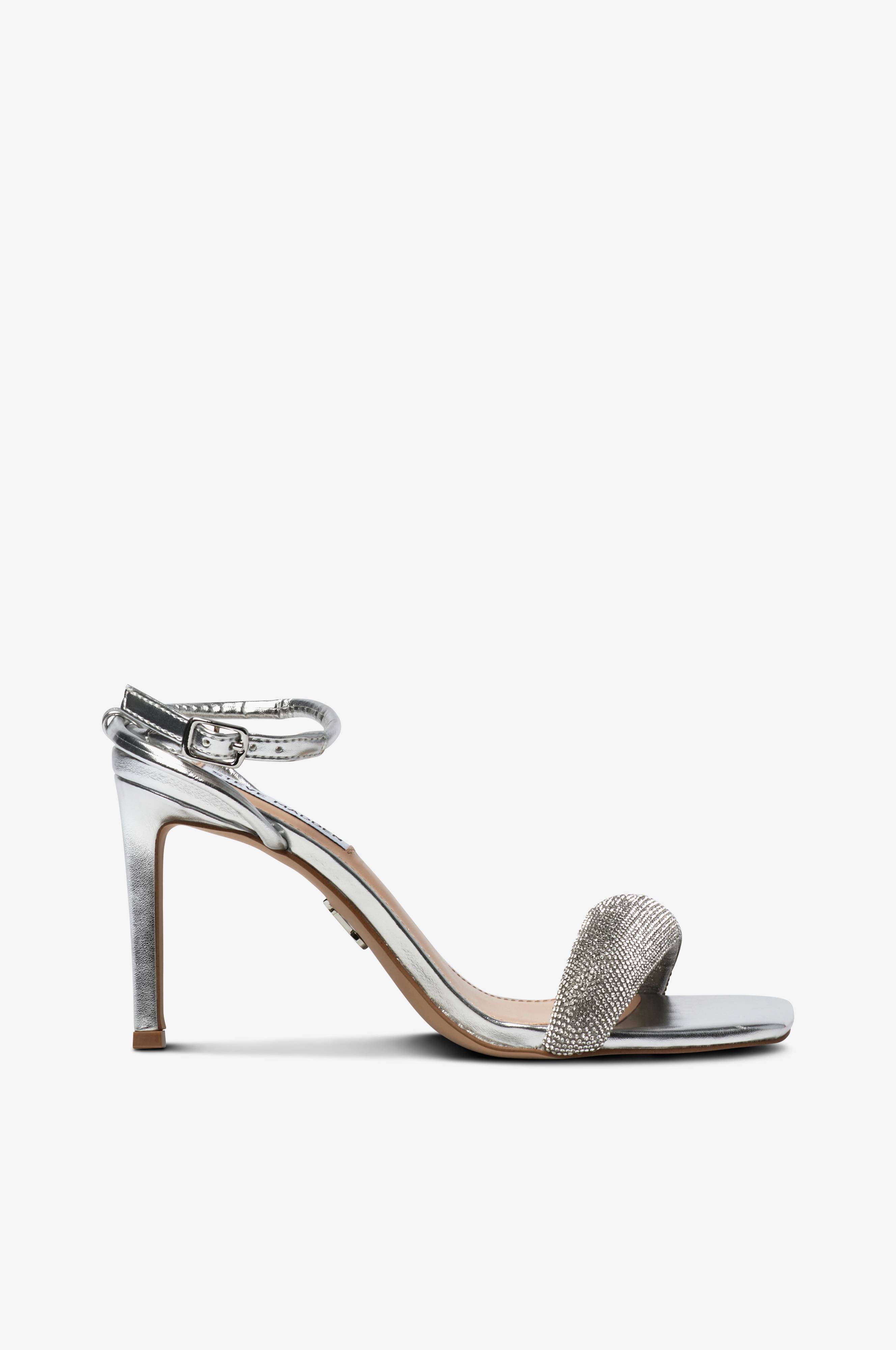 • Korkea stilettikorko• Kulmikas kärki• Paksu, pyöristetty hihna kiiltävillä lasikiveillä edessä• Ohut hihna keinonahasta soljella nilkassa• Koron korkeus: 8,5 cm