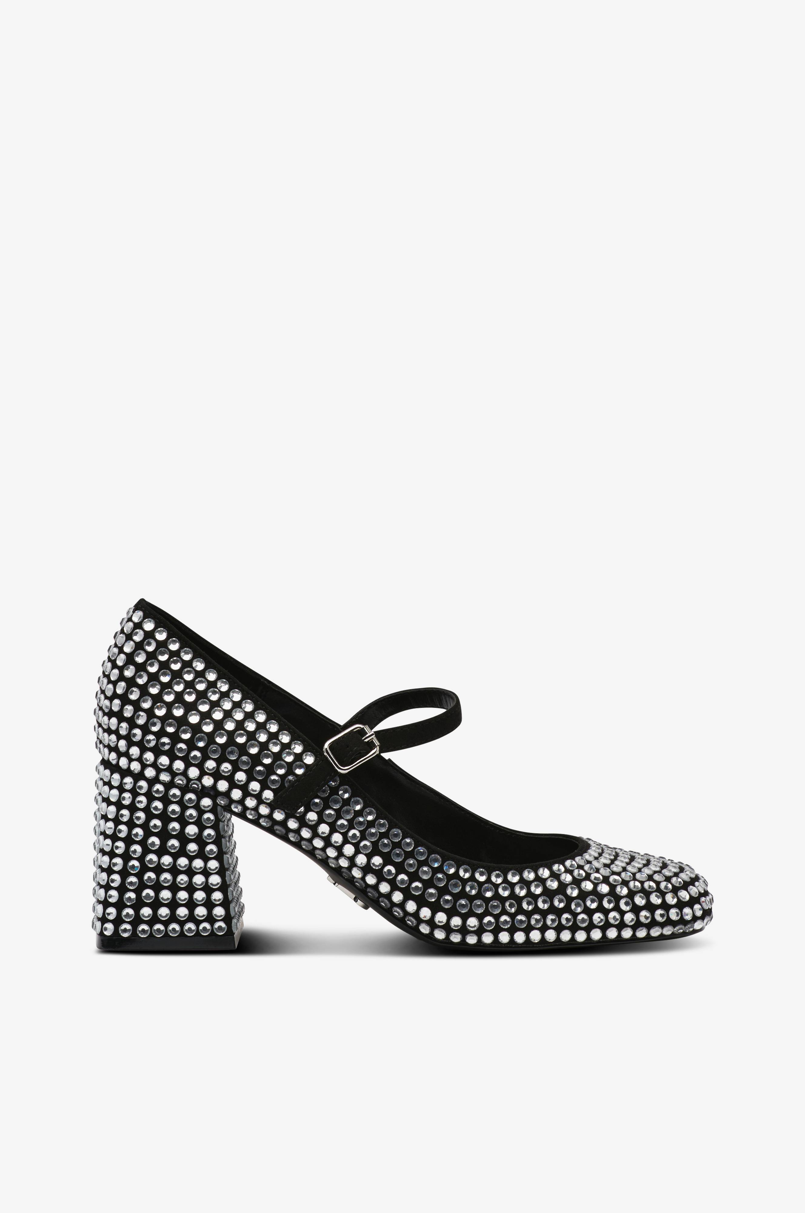 • Malli kimaltelevilla kivillä joka puolella• Kulmikas kärki• Säädettävä hihna jalan yläpuolella• Korkea, kulmikas korko• Koron korkeus: 7 cm