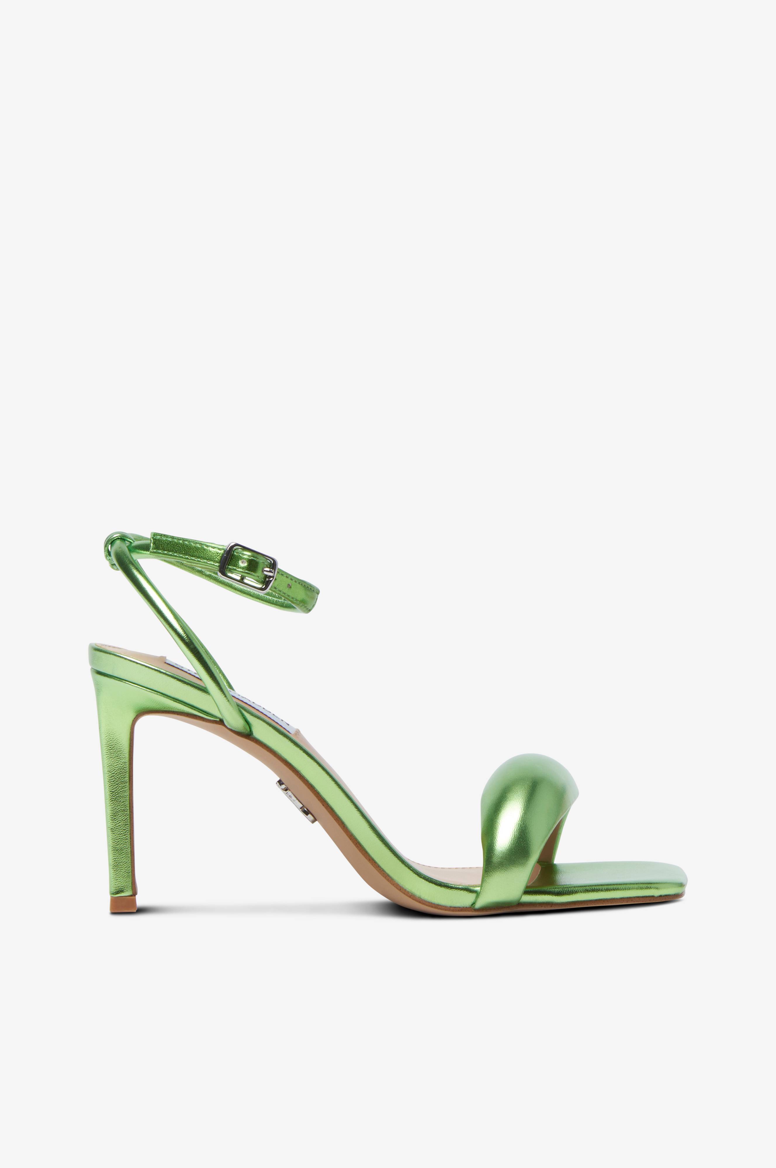 • Korkea stilettikorko• Pyöristetty, topattu hihna edessä• Ohut hihna soljella nilkassa• Valmistettu kimaltelevasta keinonahasta• Koron korkeus: 9 cm