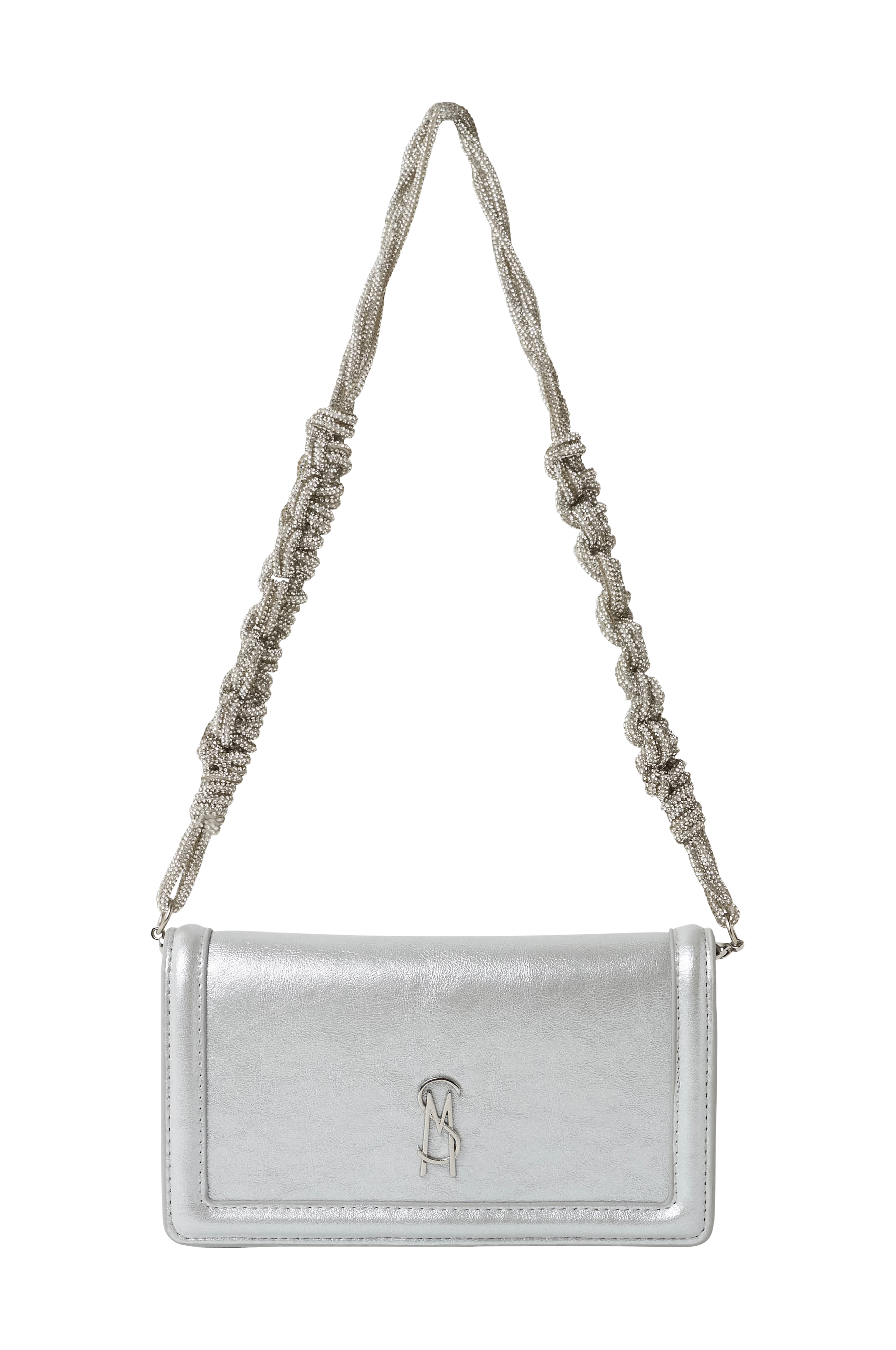 • Hopeanvärinen malli keinonahasta• Irrotettavat ketjut• Korttipaikat• Paikka nepparilla• Mitat: B 19,5 x H 11 x D 4 cm