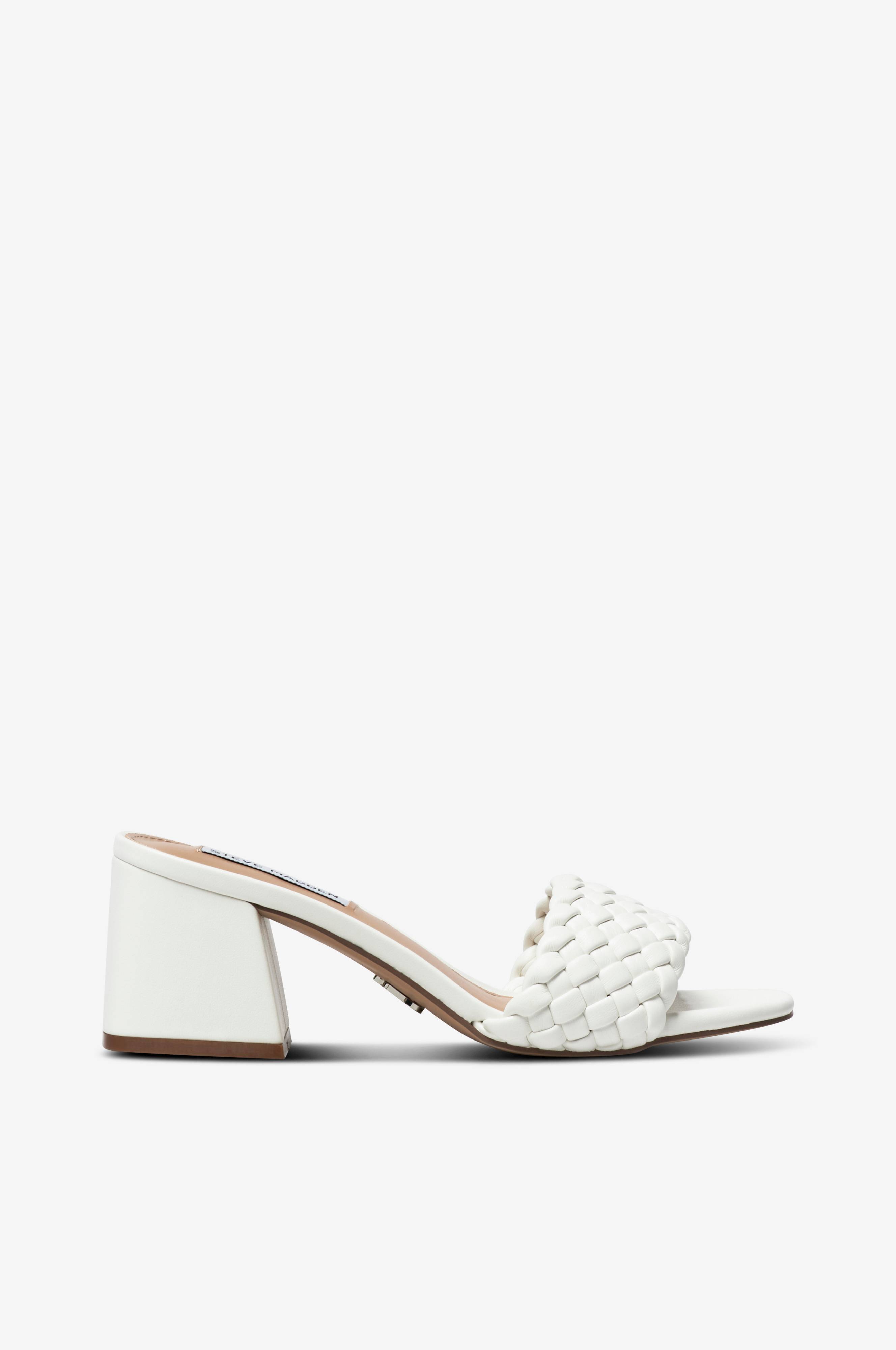 Sandaletit nahkajäljitelmää. Jalan päällä olevassa remmissä on punottu kuvio. Päällystetty tolppakorko. Koron korkeus 6 cm.
