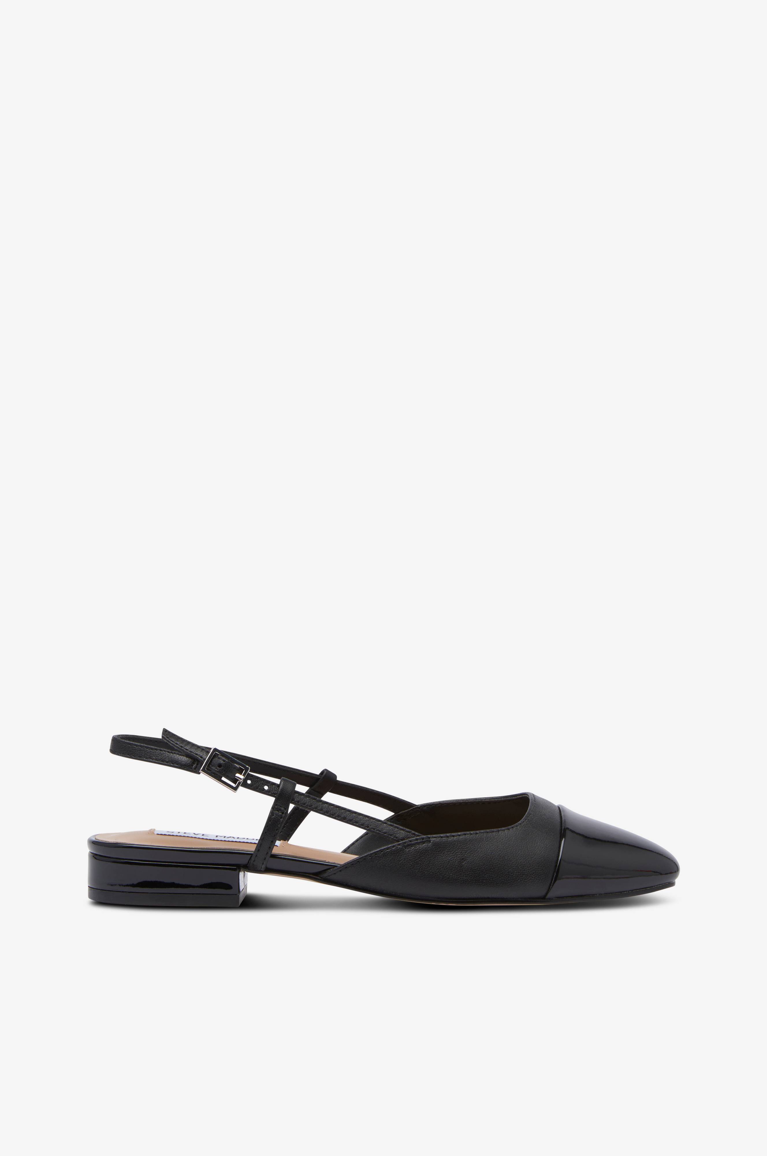 • Malli nahasta pyöristetyllä, sileällä kärjellä• Säädettävä selkänyöri elastisella liitteellä• Pehmeästi vuorattu sisäpohja• Matala, päällystetty korko• Koron korkeus: 2 cm