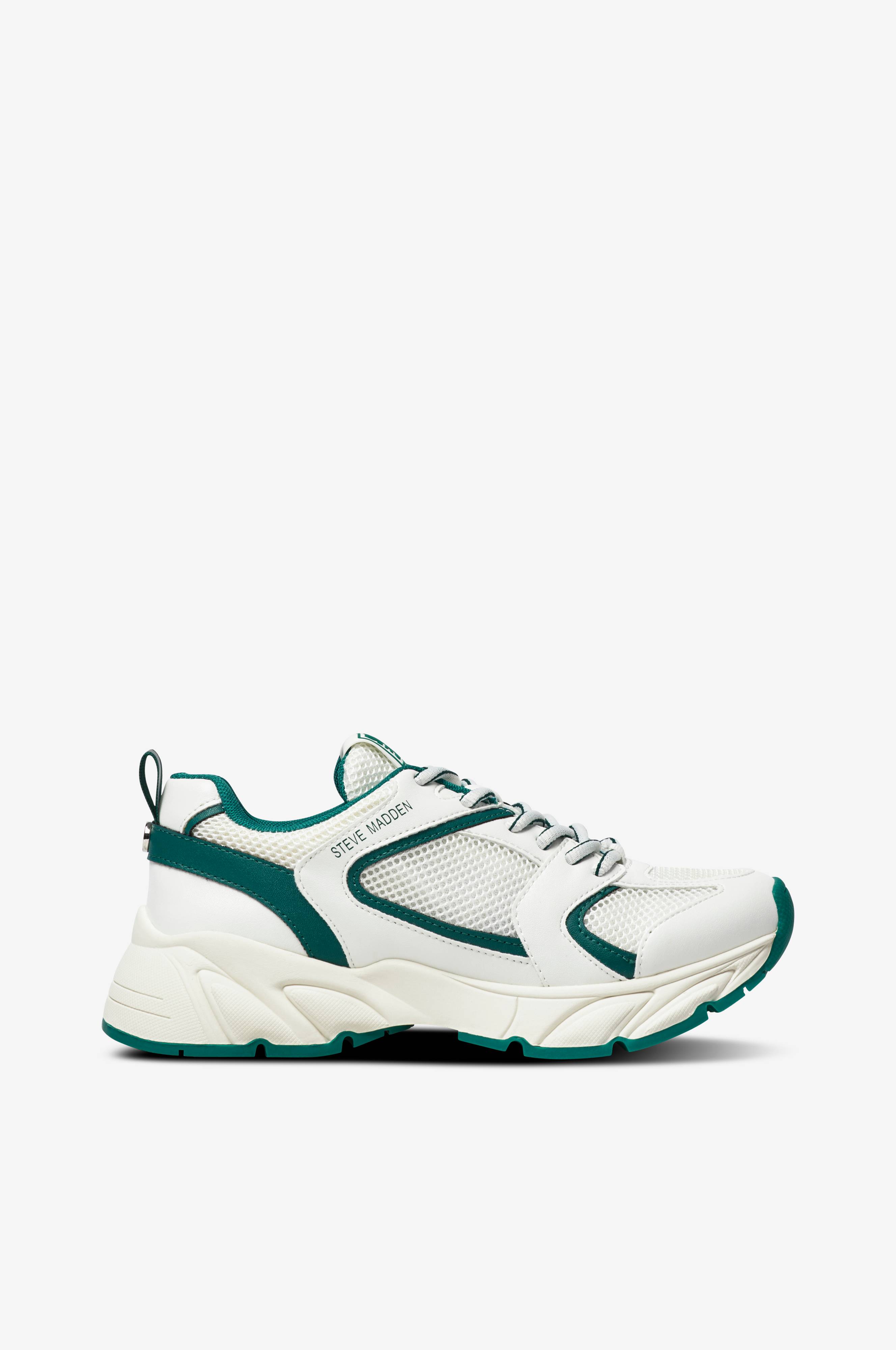 Retrohenkiset kengät nahkajäljitelmää ja kangasta. Sporttinen malli ja paksu pohja. Vetolenkki takana.
