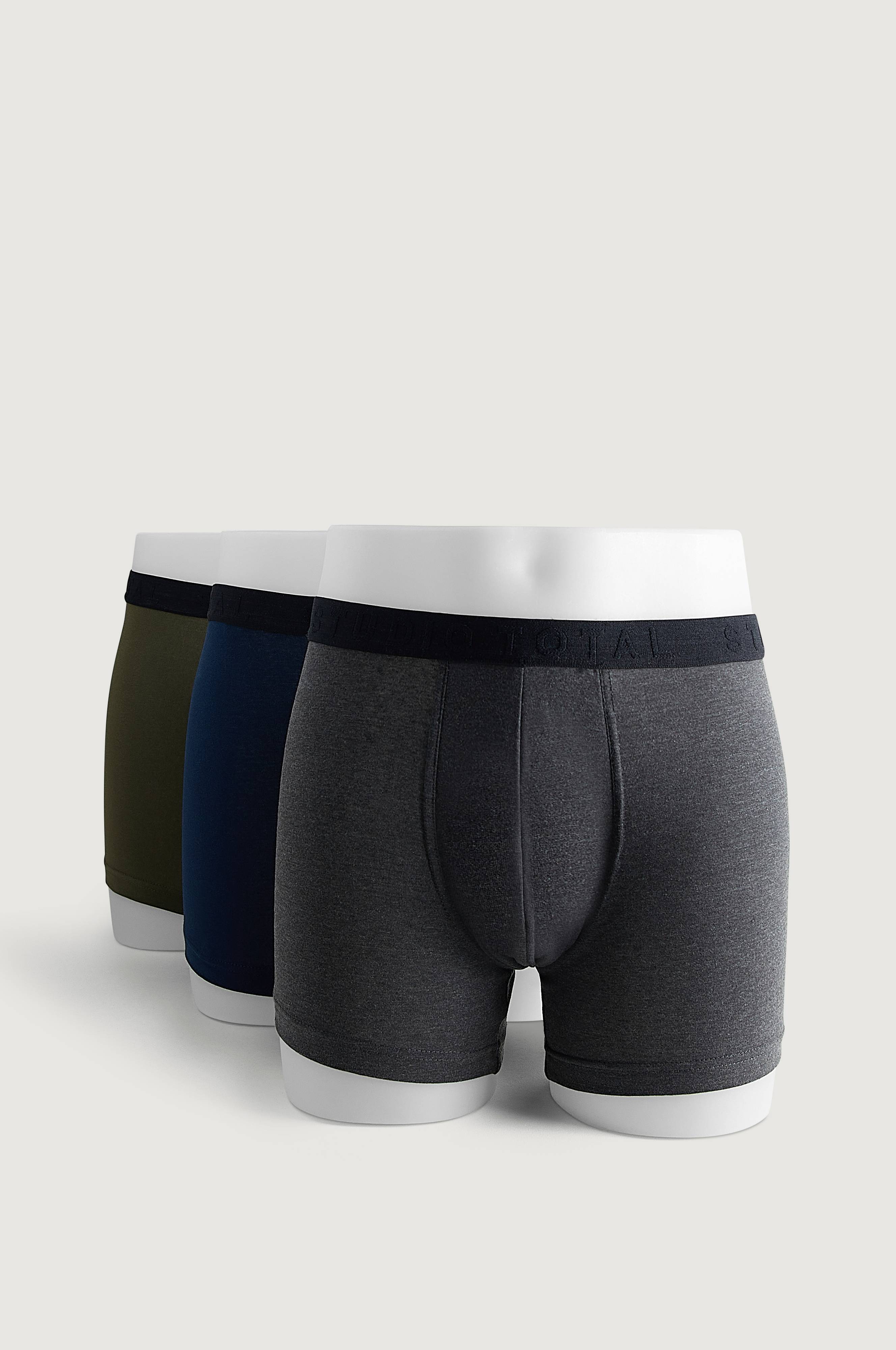 Bokserit, 3/pakkaus. Kuminauha vyötäröllä. Miellyttävän pehmeää puuvillatrikoota.Lahkeen sisäpituus 8,5 cm koossa M.