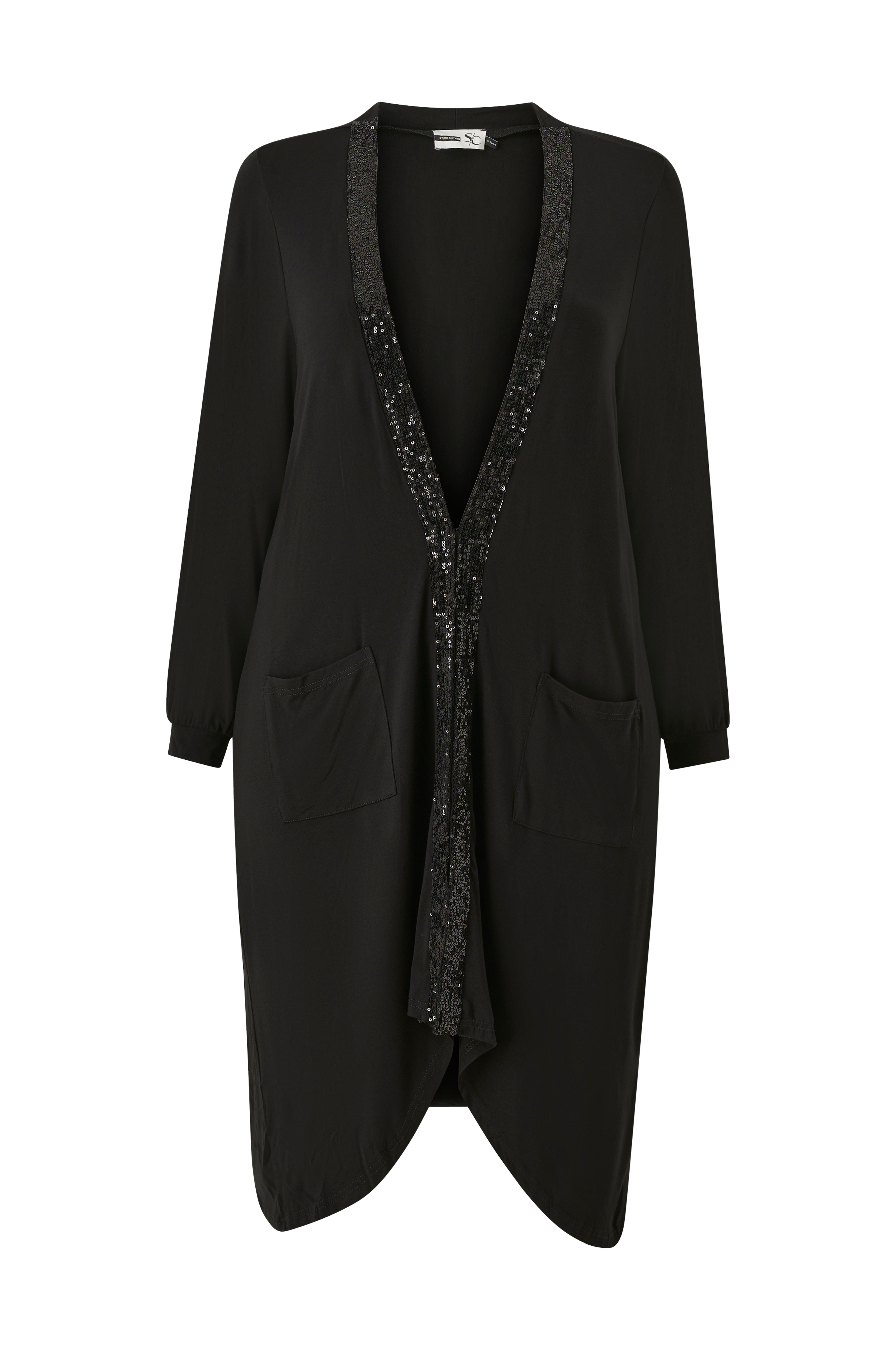 • Pitkä, ohut neuletakki viskoosijersey-kankaasta