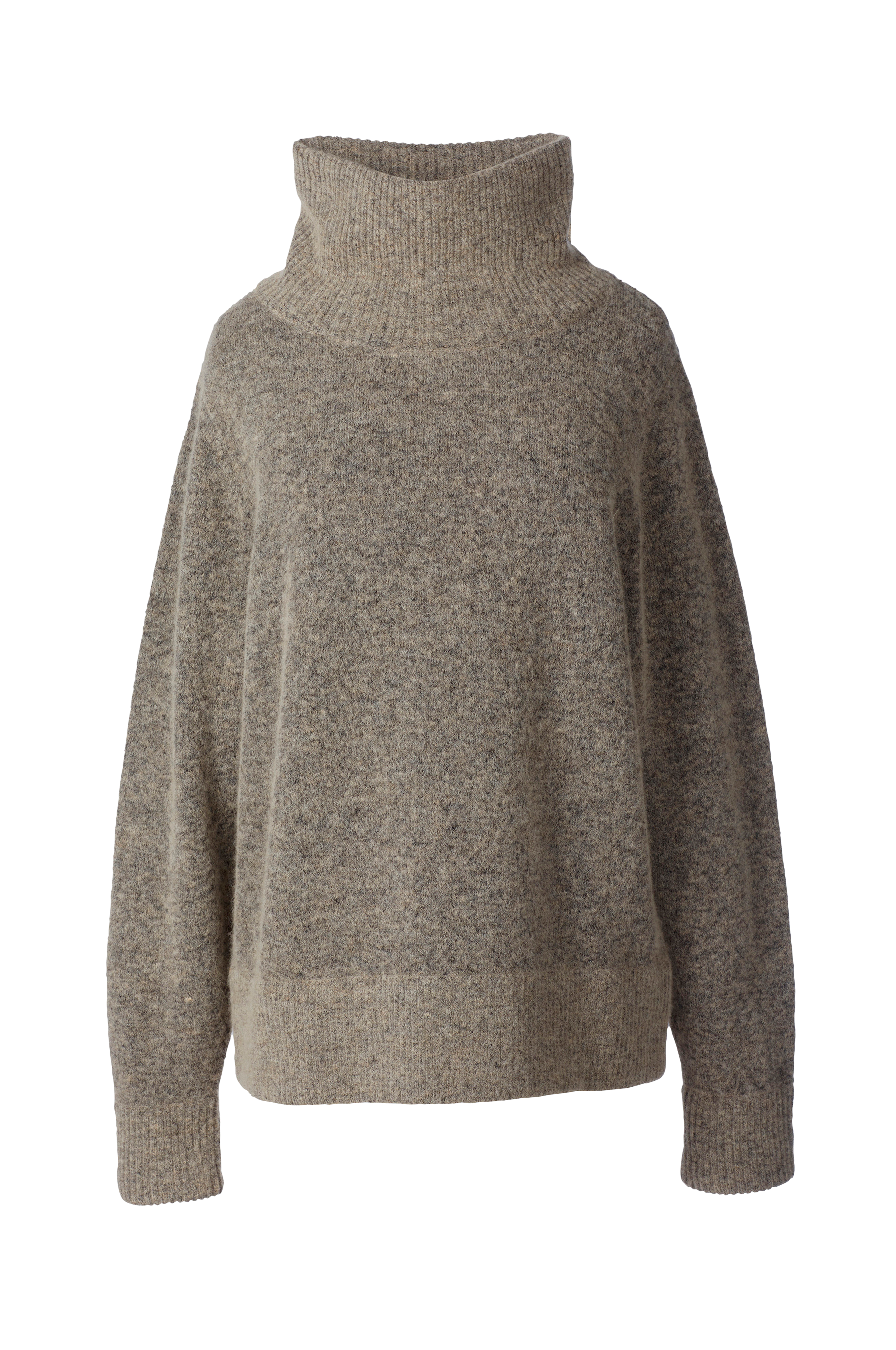 Stylein Elbe-neulepusero. Suora malli, jossa korkea kaksinkertainen kaulus joustinneuletta. Sileää villasekoitetta. Kaksinkertaiset joustinneulereunukset hihansuissa ja helmassa. Pituus n. 66 cm koossa S.