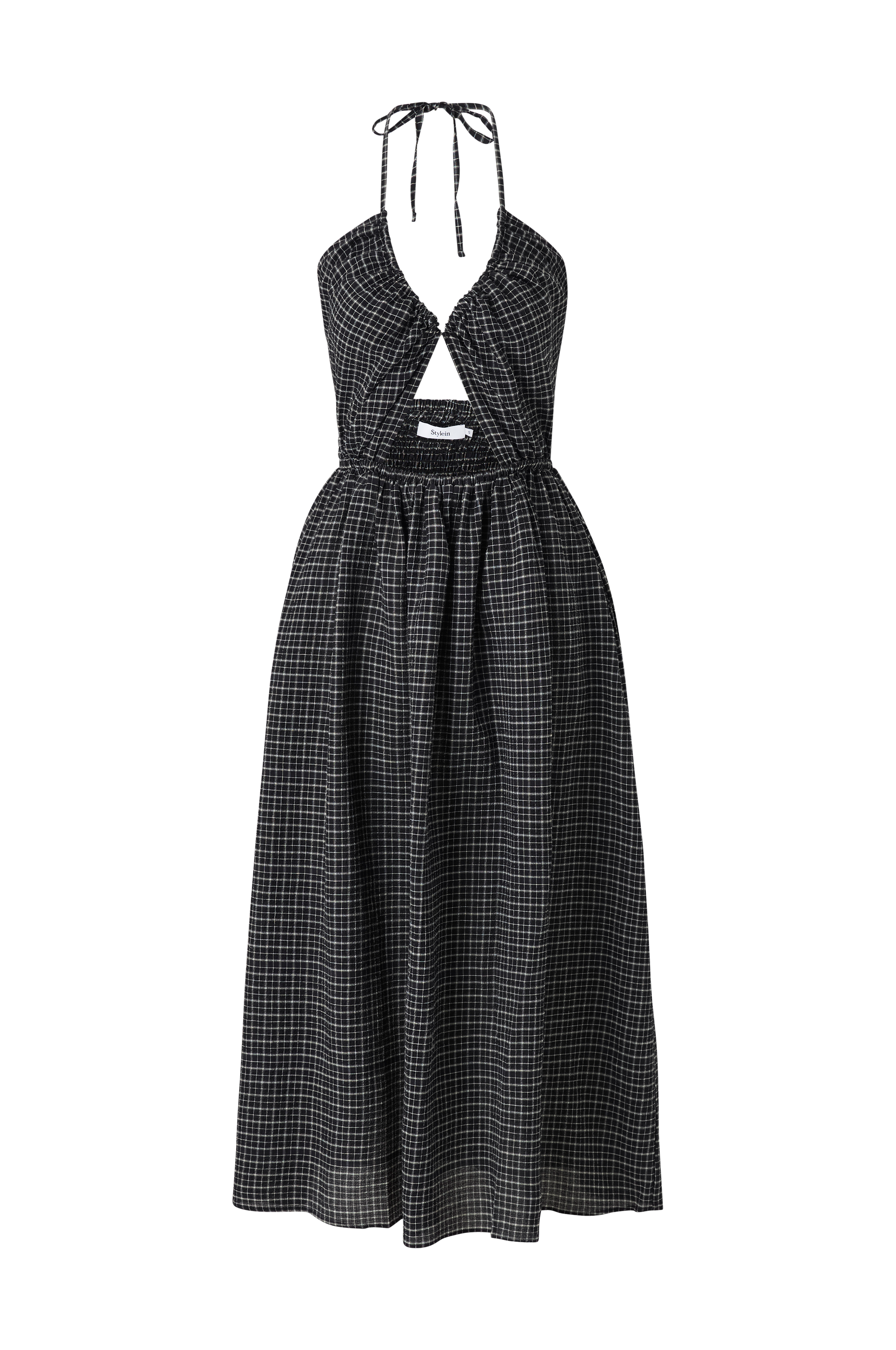 • Tyköistuva malli elastisella vyötäröllä• Niskalenkkitoppi nyörillä niskan kohdalla• Leveä, elastinen rypytys ylhäällä takana• Upotetut sivutaskut• Pituus: 125 cm koossa S