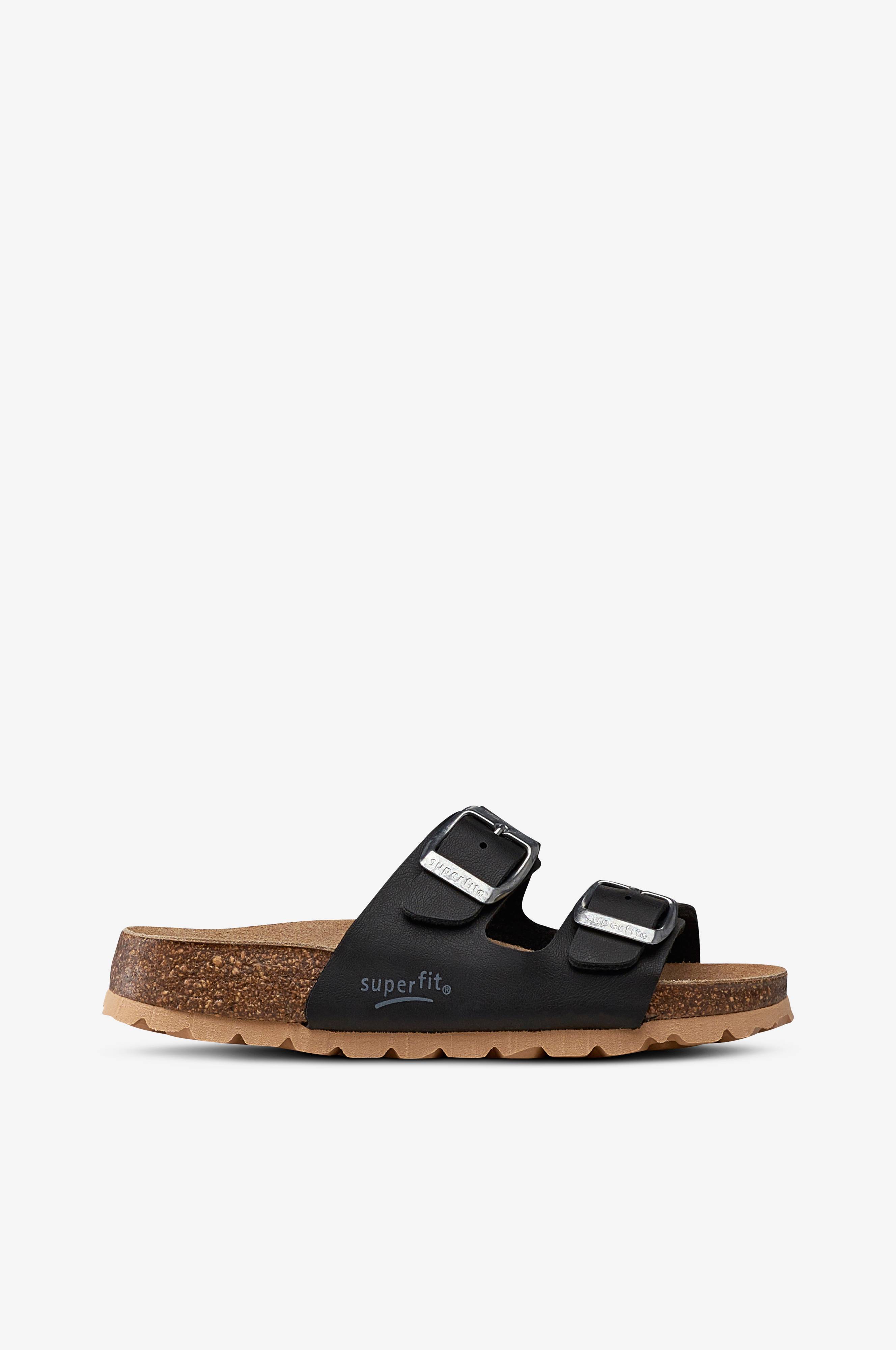 Superfit Korkis -sandaalit pistokasmallina, jossa on anatomisesti muotoiltu sisäpohja. Jalan muotoa muistuttava sisäpohja ja kannan syvennys tekevät sandaaleista hyvin istuvat. Sisäpohjan mokka hengittää hyvin. Jalan yli kulkevia remmejä on helppo säätää kahden metallisoljen avulla. Välipohja on korkkia, ja siinä on pehmeä vaimennus.