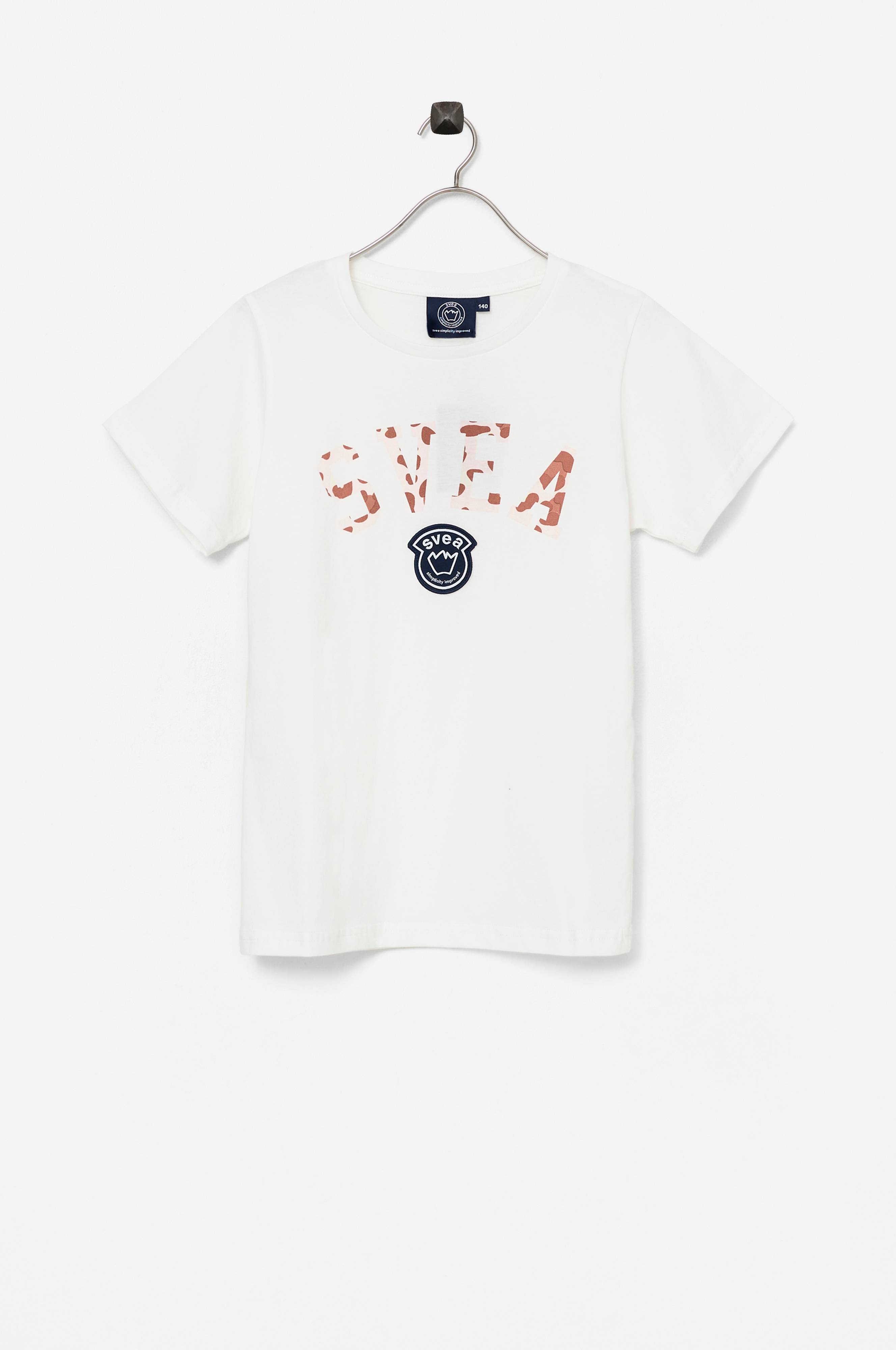 Svea K. Multi Logo Tee -pusero. Lyhythihainen malli. Edessä monivärinen painatus, jossa kimalletta. Pyöreässä pääntiessä joustinneulosreunus ja edessä päälleommeltu applikointi.