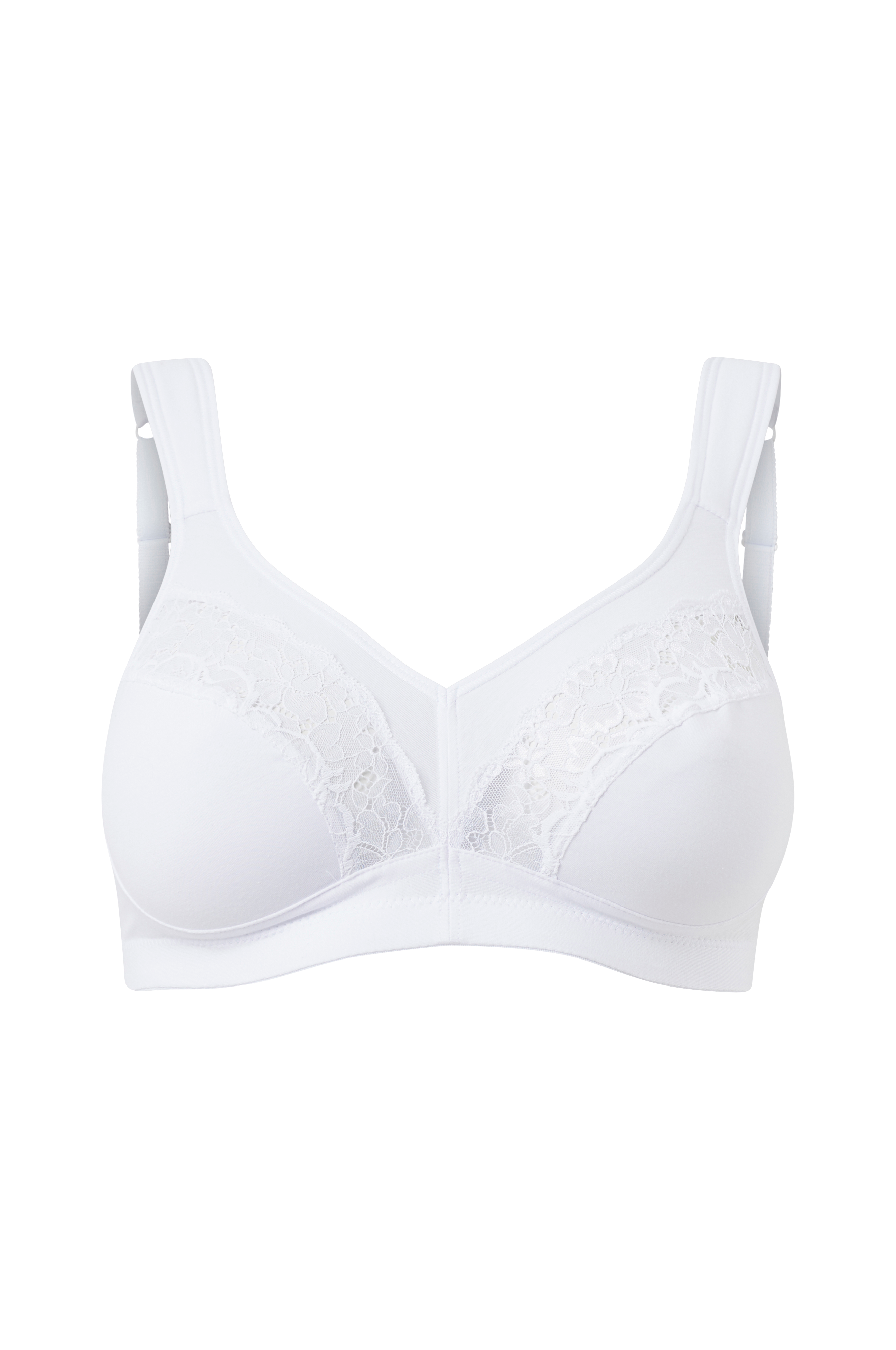 Pehmeät Swegmarks Sensible -rintaliivit. Muotoillut kupit, joissa pehmeä upotettu pitsi ylhäällä. Alareunassa leveä kuminauha, jossa pehmeä sisäpinta. Leveät, topatut olkaimet.