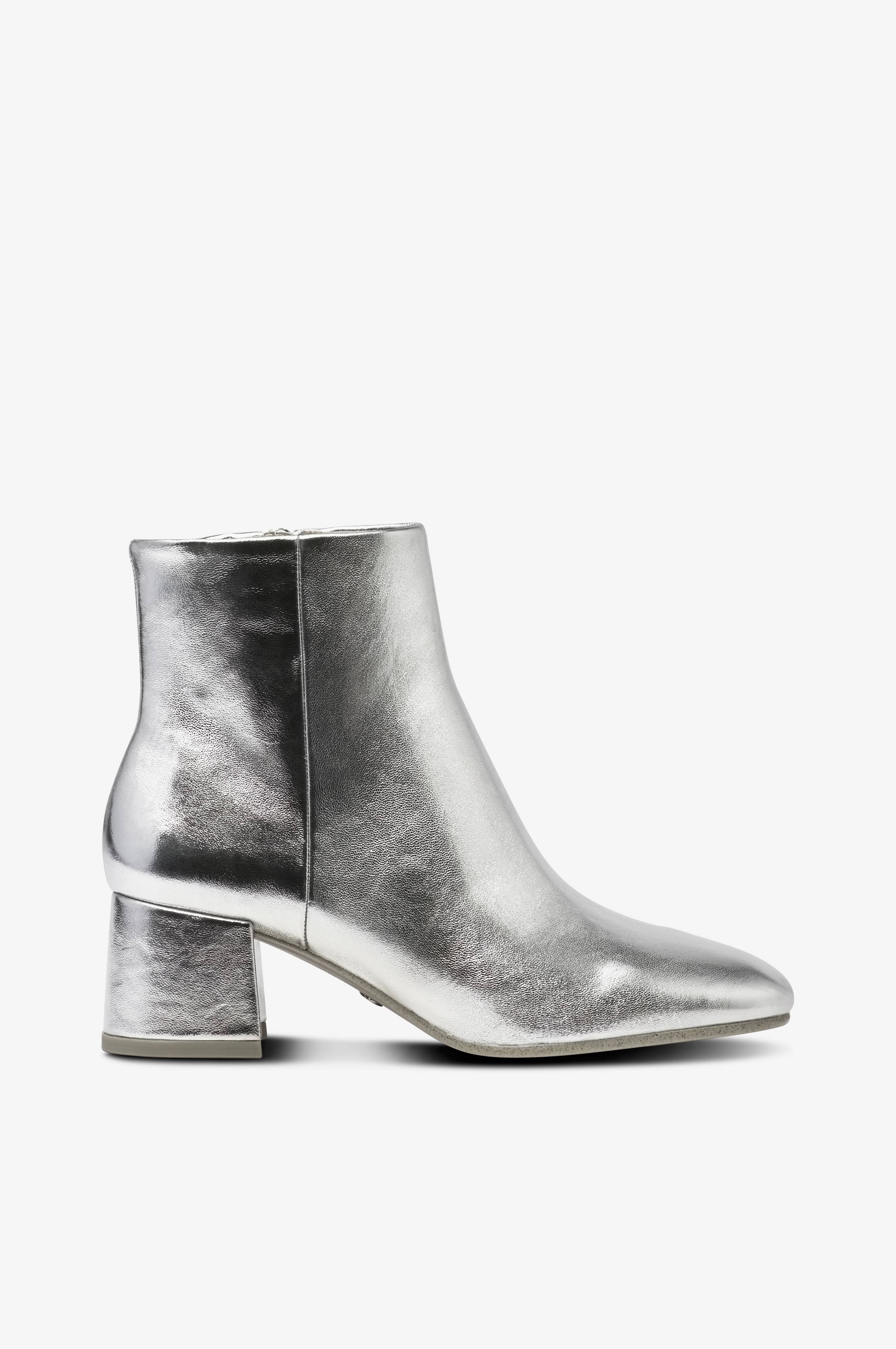 • Hopeanväriset nilkkurit keinonahasta• Vetoketju varressa• Varren korkeus: 12 cm koossa 37• Koron korkeus: 5,5 cm